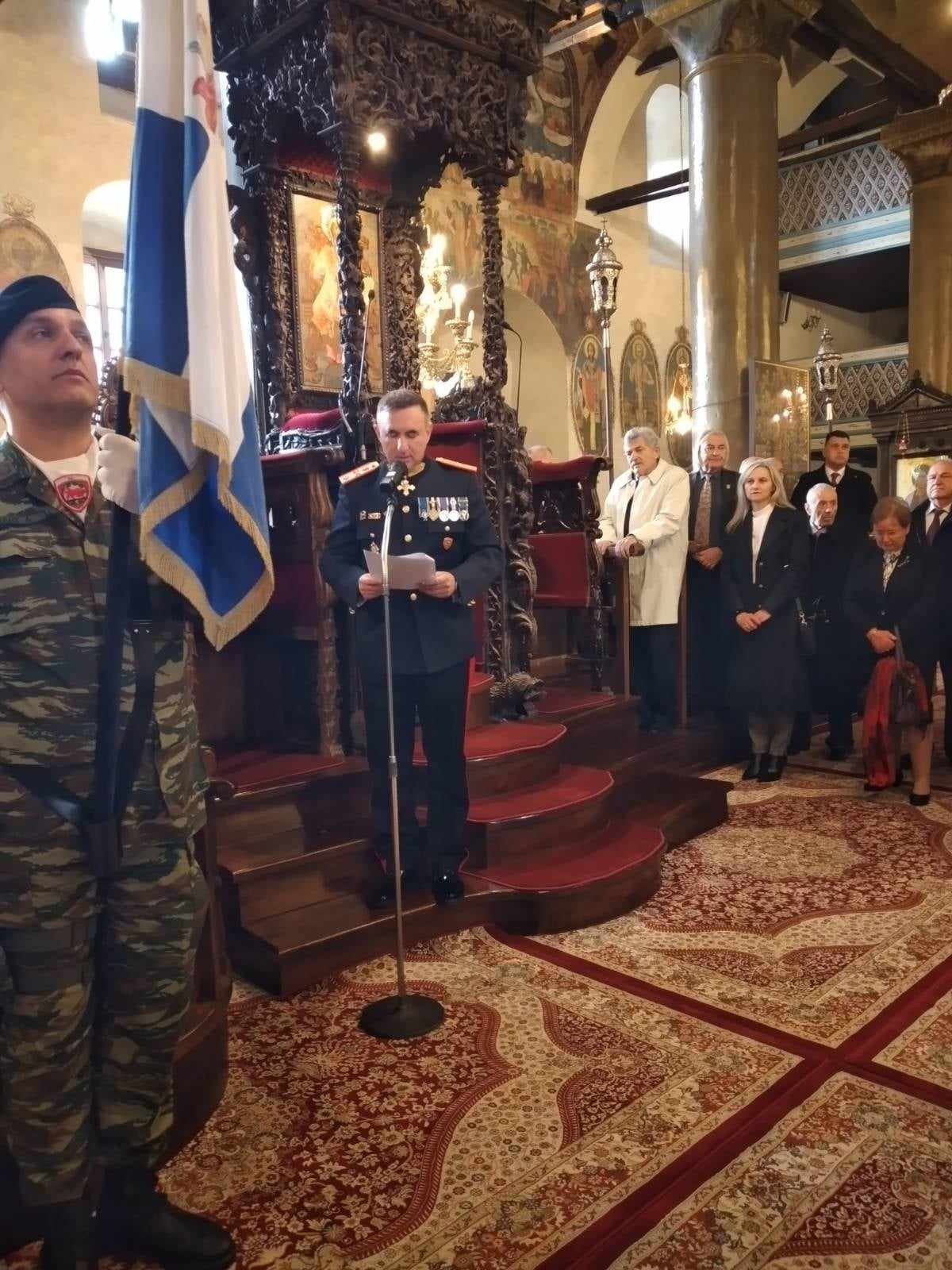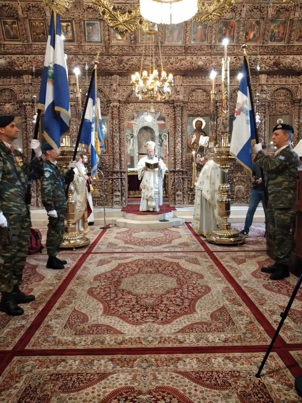 Τον πανηγυρικό της Ημέρας στη Δοξολογία, εκφώνησε ο διοικητής της 8ης Μηχανοποιημένης Ταξιαρχίας, Ταξίαρχος Γεώργιος Παππάς με αναφορές στην ιστορική διαδρομή και προσφορά των Ενόπλων Δυνάμεων της χώρας αλλά και στις προκλήσεις που αντιμετωπίζει σήμερα η χώρα λόγω των γεωπολιτικών εξελίξεων και της αναθεωρητικής πολιτικής γειτονικών χωρών, καθώς επίσης και στον σημαίνοντα κοινωνικό ρόλο που επιτελούν οι Ένοπλες Δυνάμεις.