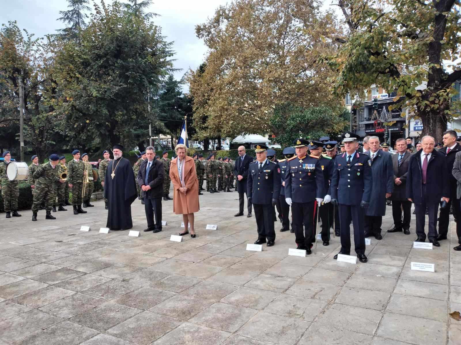 Ακολούθησε κατάθεση στεφάνων στο Ηρώο Μπιζανομάχων στο κέντρο της πόλης με την αντιπεριφερειάρχη, αρμόδια για ζητήματα Ενόπλων Δυνάμεων Γ. Μητροκώστα και τον δήμαρχο Ιωαννίνων Δημ. Παπαγεωργίου να αναφέρονται επίσης στο σημαντικό ρόλο και την προσφορά των Ενόπλων Δυνάμεων στην ευημερία της χώρας.