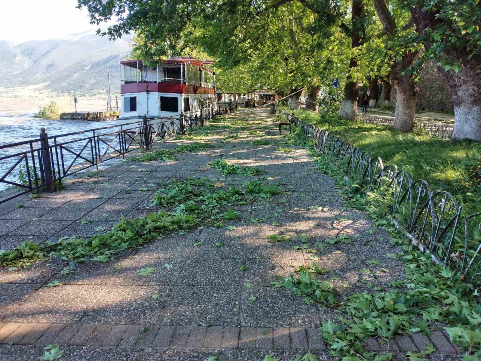Η σύσταση πάντως προς τους πολίτες, τουλάχιστον μέχρι να κοπάσει η ένταση των ανέμων είναι να αποφεύγουν να κινούνται είτε με Ι.Χ είτε πεζή, στο παραλίμνιο μέτωπο, καθώς είναι συνεχείς οι πτώσεις κλαδιών και υπάρχει μεγάλη επικινδυνότητα. Επίσης, λόγω των θυελλωδών ανέμων, από το βράδυ της Τετάρτης δεν εκτελούνται τα δρομολόγια από και προς το Νησί της Παμβώτιδας.