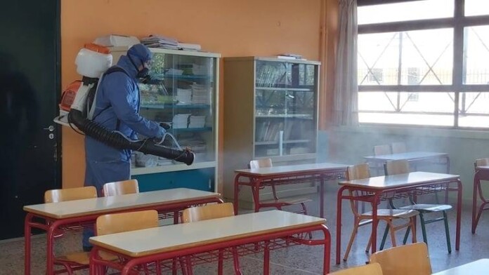 Ο Δήμος είχε προχωρήσει από την αρχή της υγειονομικής κρίσης σε απολυμάνσεις όλων των σχολικών κτιρίων, βρεφονηπιακών και παιδικών σταθμών, νηπιαγωγείων, δημοτικών, γυμνασίων, λυκείων, γενικών και ΕΠΑΛ, παιδικών. Οι δράσεις αυτές επαναλαμβάνονται ανά τακτά χρονικά διαστήματα και αυτές τις ημέρες οι υπηρεσίες του Δήμου καθαρίζουν εκ νέου και σχολαστικά αίθουσες διδασκαλίας, χώρους υγιεινής και αύλειους χώρους.
