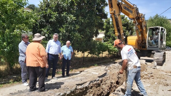 Στο σημείο των εργασιών που εκτελούνται στην περιοχή της Λιμίνης βρέθηκε, ο Δήμαρχος Αρταίων Χρ. Τσιρογιάννης, συνοδευόμενος από τον Διευθυντή της ΔΕΥΑΑ Βασίλη Κρανιώτη, τον Πρόεδρο της Κοινότητας Λιμίνης Γιάννη Χαλμαντζή και υπηρεσιακά στελέχη της ΔΕΥΑΑ.