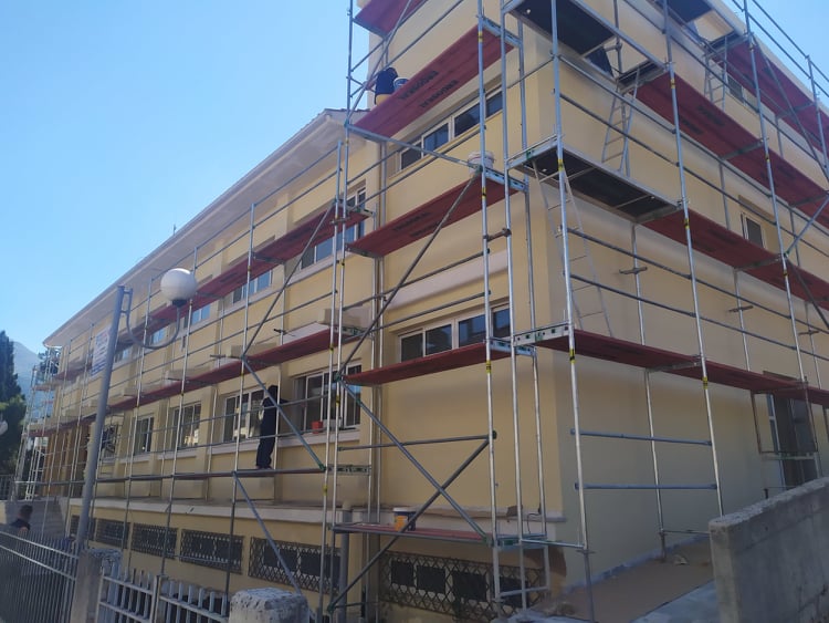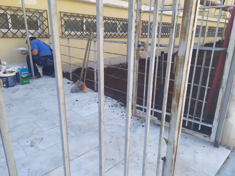 Στο εξωτερικό μέρος συνεργεία βάφουν το κτήριο, ενώ στην πλαϊνή μεριά τοποθετήθηκαν μονώσεις, καθώς υπήρχε πρόβλημα υγρασίας και κρίθηκε σκόπιμο να δοθεί μια λύση για να μην δημιουργηθούν εκ νέου προβλήματα. Ταυτόχρονα, γίνονται συντηρήσεις, βαψίματα και διαμορφώνεται ο εξωτερικός χώρος ενώ θα αντικατασταθούν και τα φωτιστικά. Επίσης, γίνεται προεργασία για να διαμορφωθεί το πράσινο περιμετρικά του κτηρίου. Επίσης θα ακολουθήσει καθαρισμός και κοπή χορταριών και σε άλλα σημεία γύρω από το κτήριο.