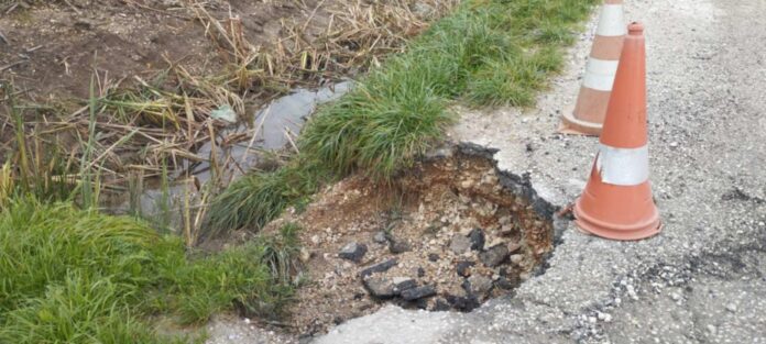 Κομμάτια της ασφάλτου ξηλώθηκαν και δημιούργησαν μεγάλες και άκρως επικίνδυνες λακκούβες, ενώ σε κάποια σημεία, έχει υποχωρήσει το έδαφος από τα νερά των αποστραγγιστικών αυλάκων και είναι θέμα χρόνου η ζημιά να γίνει ακόμη μεγαλύτερη. Προς το παρόν έχουν τοποθετηθεί κάποιοι κώνοι για να την αποφυγή κάπου ατυχήματος, η παρέμβαση όμως θα πρέπει να είναι άμεση γιατί πέραν των άλλων ο δρόμος είναι στενός, από αυτόν διέρχονται καθόλη τη διάρκεια της ημέρας βαρέα οχήματα ενώ τη νύχτα δεν υπάρχει επαρκής φωτισμός.