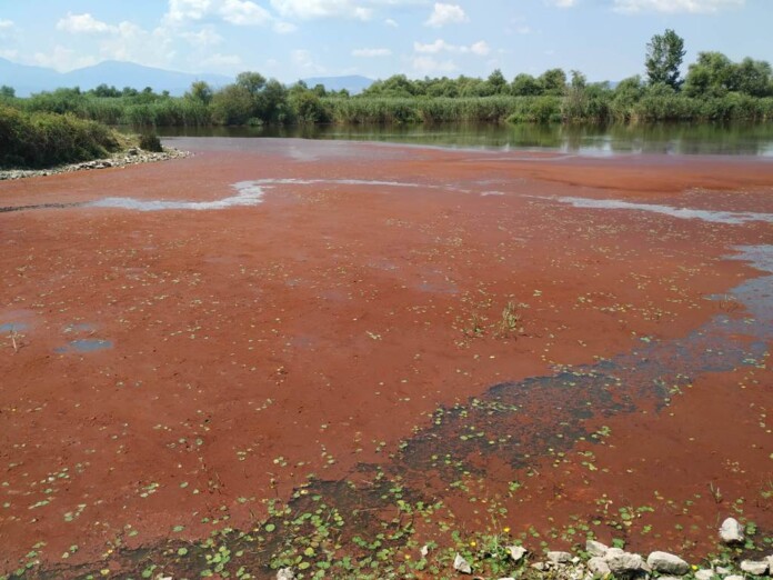 Ένα κόκκινο φιλμ πάχους μερικών χιλιοστών έκανε την εμφάνισή του στην επιφάνεια των υδάτων της λίμνης Παμβώτιδας, στην περιοχή «Πόρος».