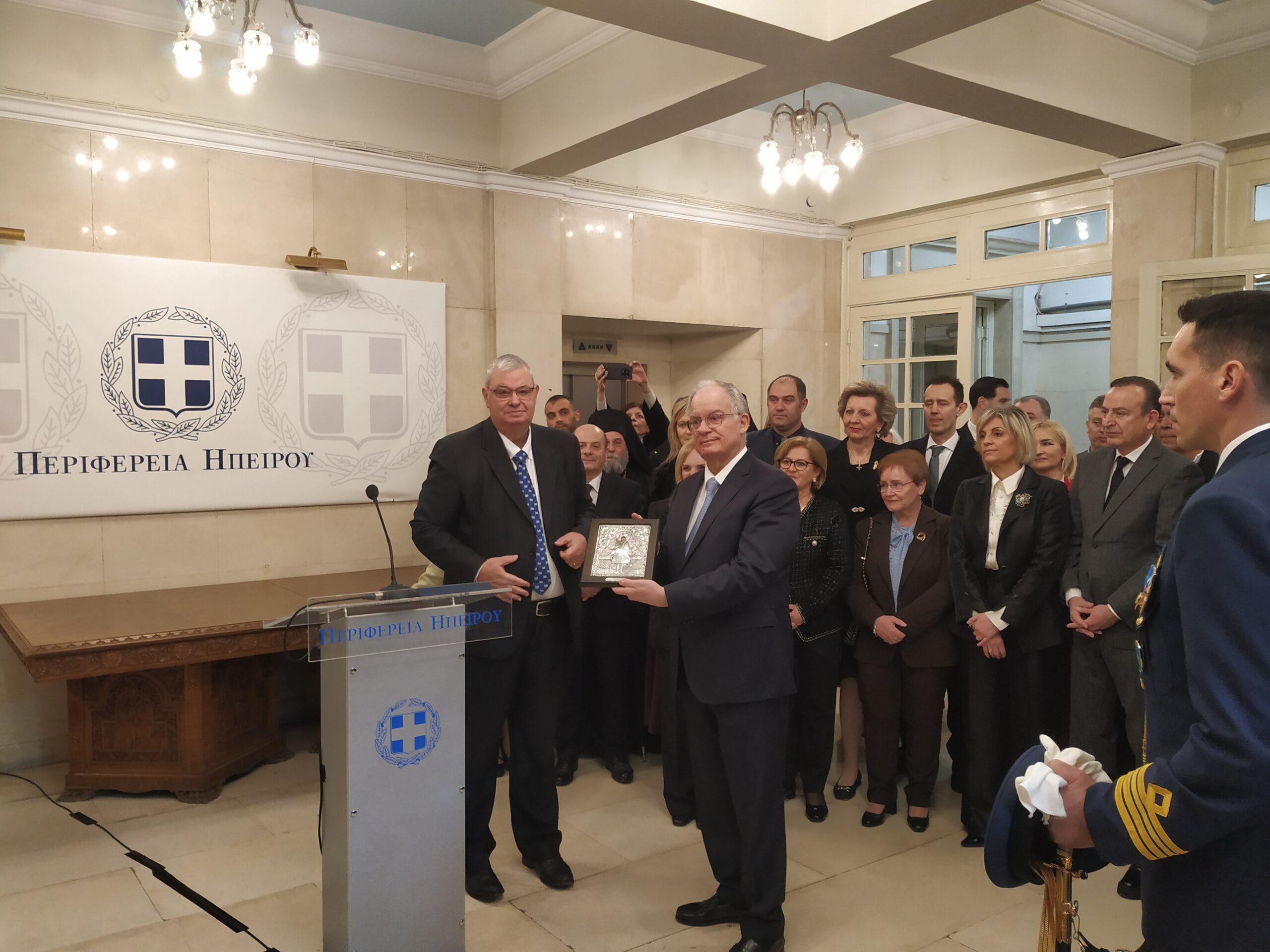 Στην έδρα της Περιφέρειας Ηπείρου πραγματοποιήθηκε η υποδοχή του Προέδρου της Δημοκρατίας, Κων. Τασούλα, από τον περιφερειάρχη, στο πλαίσιο των εορτασμών για τα Ελευθέρια 2026 στα Ιωάννινα.