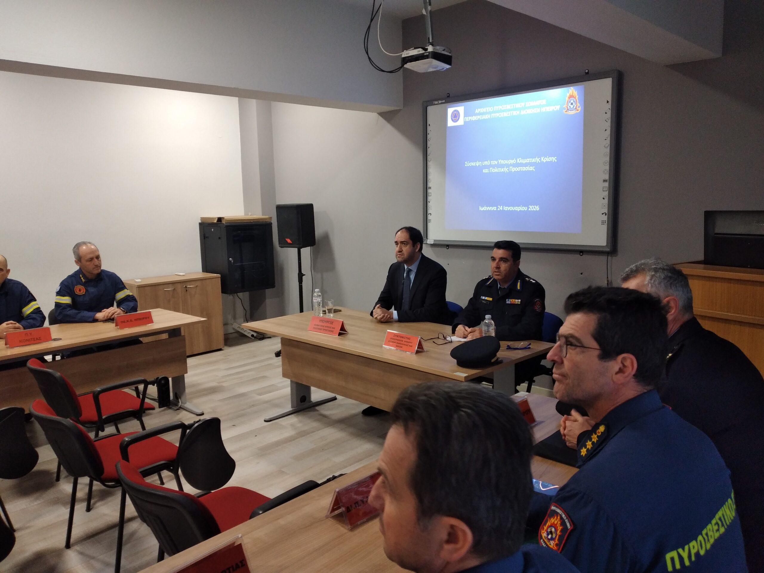 Το μεσημέρι του Σαββάτου, ο υπουργός Κλιματικής Κρίσης και Πολ. Προστασίας Γιάννης Κεφαλογιάννης προήδρευσε σε επιχειρησιακή σύσκεψη στην έδρα της Διοίκησης Πυροσβεστικών Υπηρεσιών Ηπείρου, παρουσία και του νέου Συντονιστή Επιχειρήσεων Ηπείρου – Δυτ. Μακεδονίας κ. Γιώτη που ανέλαβε καθήκοντα μόλις πριν από λίγες ημέρες και των άλλων νέων διοικητών στην Ήπειρο και στις τέσσερις Περιφερειακές Ενότητες.