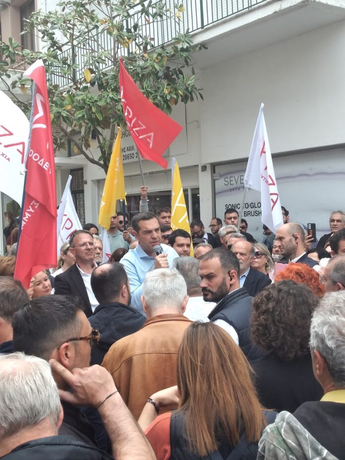Ο πρόεδρος του ΣΥΡΙΖΑ-ΠΣ τόνισε ότι οι εκλογές της 21ης Μάη είναι μια ισχυρή απόφαση για το αν στον τόπο μας θα έρθει Δικαιοσύνη και στο θέμα υποκλοπών, αλλά και για το άλλο μεγάλο έγκλημα και κάποιοι θέλουν να ξεχάσουν, τα Τέμπη. Απευθυνόμενος δε στον Ν. Ανδρουλάκη, σημείωσε ότι «δεν μπορεί κάποιοι να λένε οι υπαίτιοι στην φυλακή, αλλά ίσες αποστάσεις ανάμεσα στον ΣΥΡΙΖΑ-ΠΣ και τη ΝΔ».