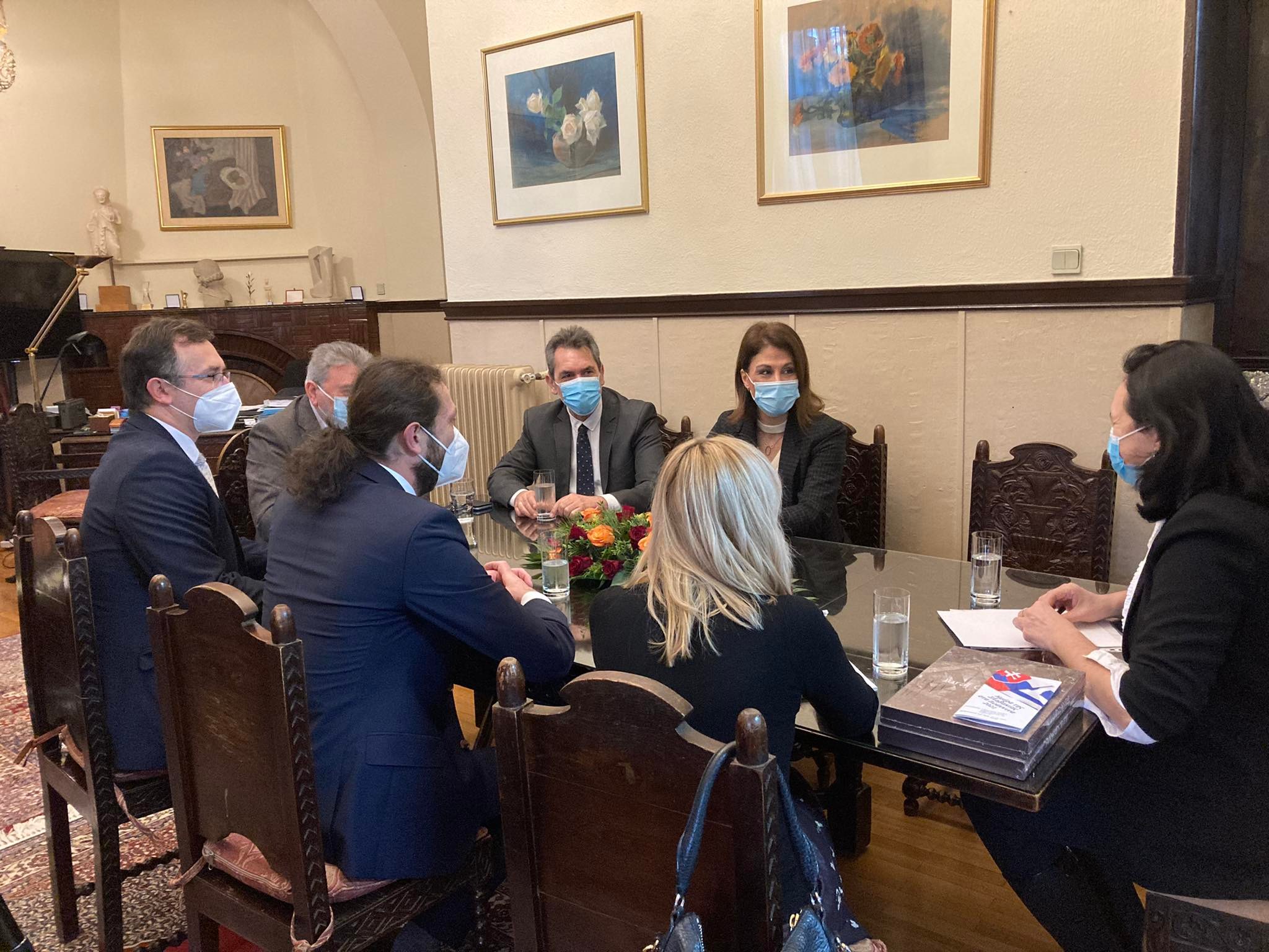 Στο πλαίσιο της «Ημέρας της Σλοβακίας στα Ιωάννινα 2021», το πρωί επισκέφθηκε το Δημαρχείο αντιπροσωπεία της Σλοβακικής Δημοκρατίας στην Αθήνα, αποτελούμενη από την Πρόξενο κα Petra Prosňanská, τον αντιδήμαρχο της πόλης Ντόλνυ Κουμπίν (Dolný Kubín) κ. Matúš Lakoštík και τον διευθυντή του Λυκείου Pavla Országha Hviezdoslava κ. Peter Strežo.