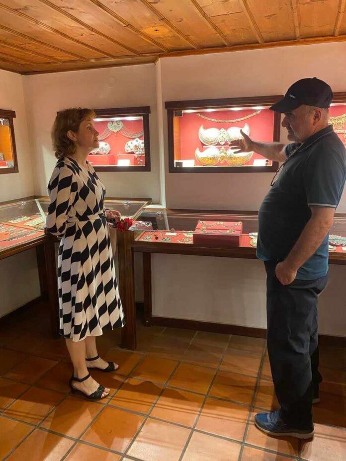 Κατά τη διάρκεια της ξενάγησης, η κα Laci είχε την ευκαιρία να δει από κοντά τα σημαντικά ιστορικά κειμήλια της συλλογής Ραπακούση που το Μουσείο στεγάζει και τα οποία ανασυνθέτουν τον ιστορικό και πνευματικό βίο της Ηπείρου από τον 18o αιώνα και εξής. Ο κ. Ραπακούσης αναφέρθηκε στην πλούσια ιστορία και παράδοση της περιοχής, ενώ η κα Laci εξέφρασε τον ενθουσιασμό της για την αξία και τη σημασία του Μουσείου στην ανάδειξη, προώθηση και διατήρηση της πολιτιστικής κληρονομιάς του τόπου.