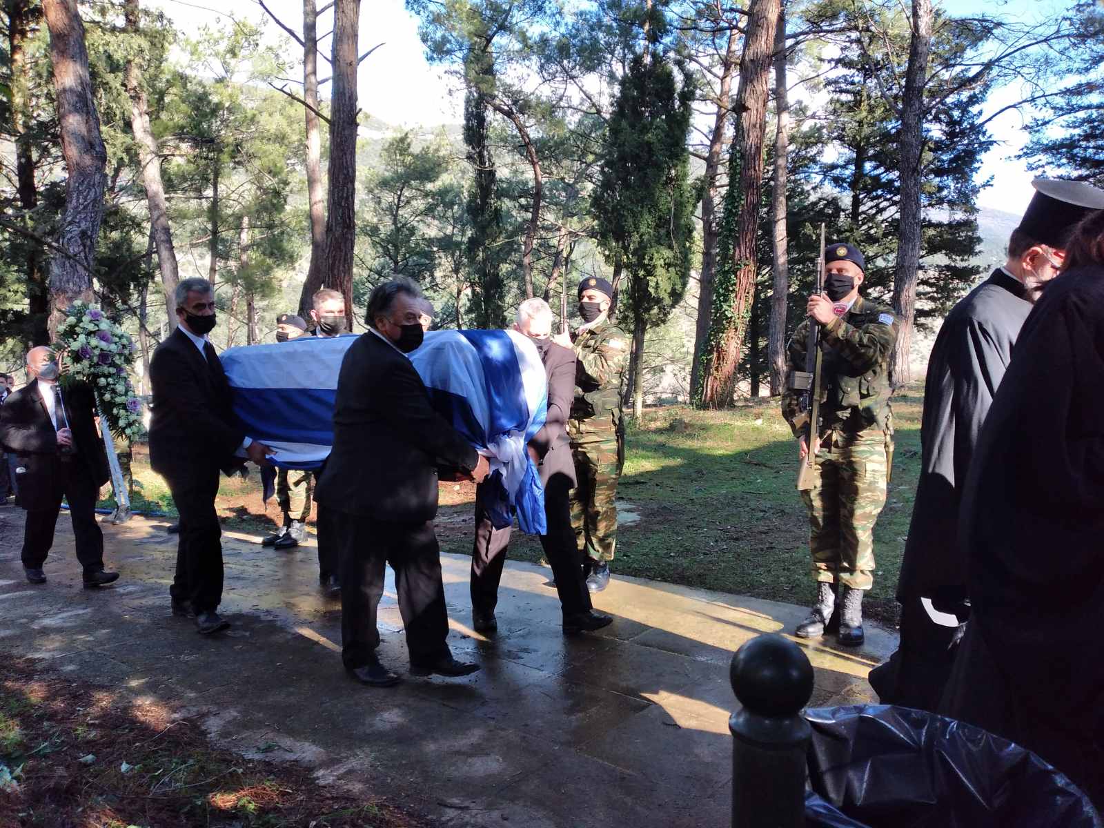Στρατιωτικό άγημα απέδωσε φόρο τιμής πυροβολώντας τρεις φορές στον αέρα.