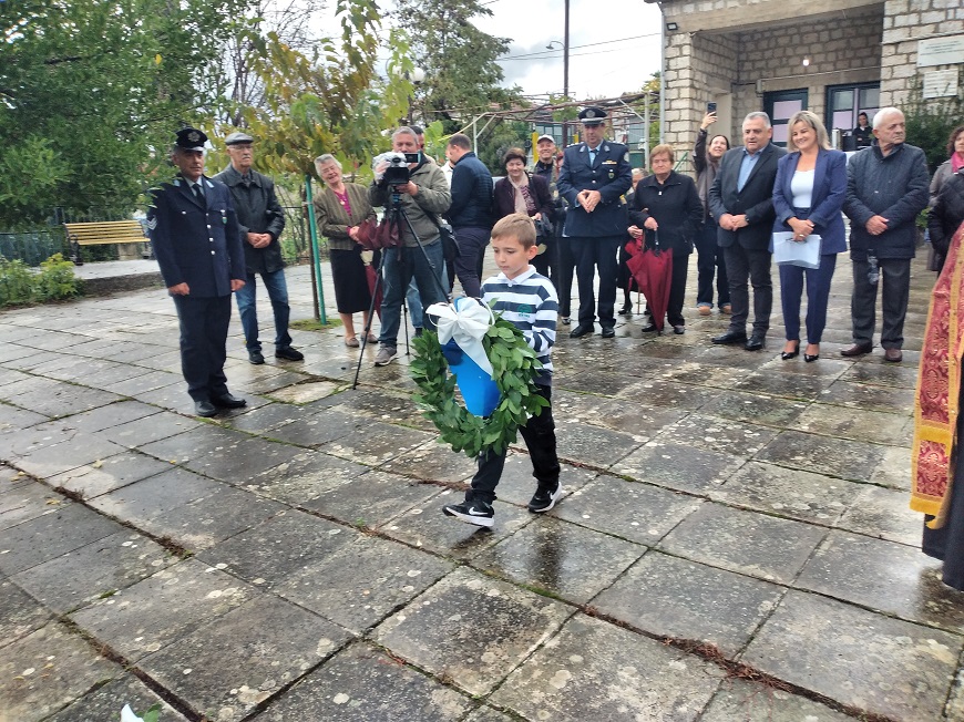 Ιδιαίτερα συγκινητική στιγμή η κατάθεση στεφάνου εκ μέρους της Εθνικής Αντίστασης από τον μικρό Γιώργο, το ένα από τα δύο μικρά παιδιά – άλλος ο είναι ο αδερφός του Τάσος, που μένουν στο Σακελλαρικό με τους γονείς τους, έχοντας δώσει πραγματική ζωή στο χωριό και μία ανάσα χαράς στους κατοίκους που τα αισθάνονται ως δικά τους παιδιά κι εγγόνια.