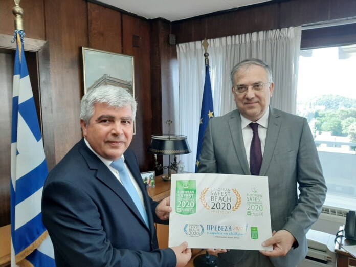 Σήμερα επισκέφθηκα τον Υπουργό Εσωτερικών στην Αθήνα με ιδιαίτερη χαρά, υπερηφάνεια και τιμή, ως δήμαρχος Πρέβεζας, διότι το αποτέλεσμα της καμπάνιας προβολής της Πρέβεζας που ανέδειξε τα συγκριτικά πλεονεκτήματα του τόπου ως προς τις ανάγκες της πανδημίας στη νέα τουριστική σεζόν, αποτέλεσε το γεγονός που οδήγησε στη διπλή διεθνή αναγνώριση της πρώτης ασφαλέστερης παραλίας στην Ευρώπη καθώς και του πέμπτου ασφαλέστερου προορισμού από το EUROPEAN BEST DESTINATION.