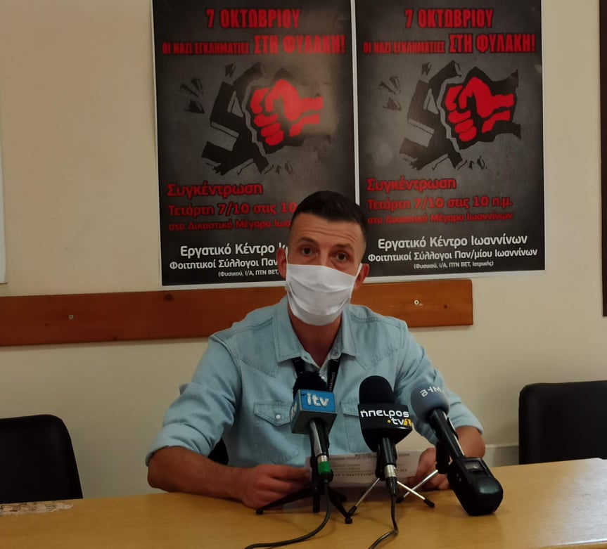 Το Εργατικό Κέντρο Ιωαννίνων και οι Φοιτητικοί Σύλλογοι του Πανεπιστήμιου Ιωαννίνων (Φυσικού, Ιστορικού – Αρχαιολογικού, Νηπιαγωγών, Βιολογικών Εφαρμογών, Ιατρικής) καλούμε κάθε εργαζόμενο, κάθε νέο, κάθε λαϊκό άνθρωπο να ενώσουμε τις φωνές μας ενάντια στην βαρβαρότητα του Φασισμού, να γκρεμίσουμε την αδικία! Την Τετάρτη 7 Οκτώβρη ο εργαζόμενος λαός θα βροντοφωνάξει την δική του απόφαση.»