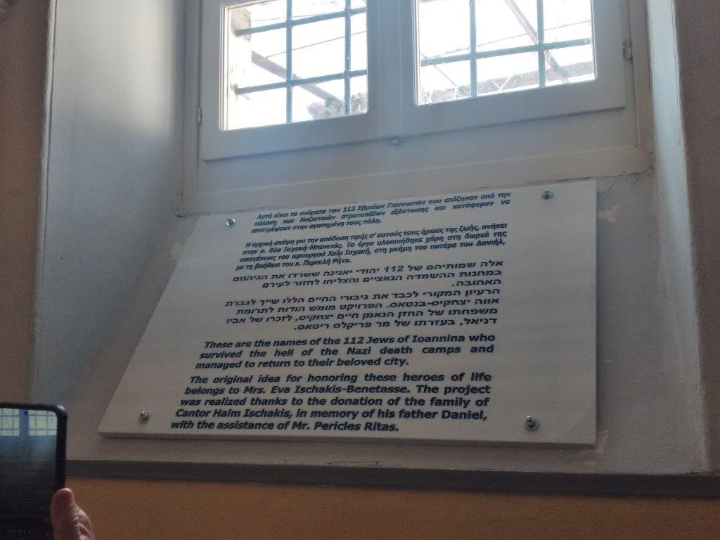 Σε μία ιδιαίτερα φορτισμένη ατμόσφαιρα στην Ιερά Συναγωγή των Ιωαννίνων, η Ισραηλιτική Κοινότητα της πόλης και ο Δήμος Ιωαννιτών προχώρησαν στα αποκαλυπτήρια των μαρμάρινων αναμνηστικών πλακών με τα ονόματα εκείνων που επέστρεψαν από τα στρατόπεδα εξόντωσης των ναζί και προσπάθησαν να επανασυστήσουν την άλλοτε ακμάζουσα εβραϊκή κοινότητα των Ιωαννίνων.