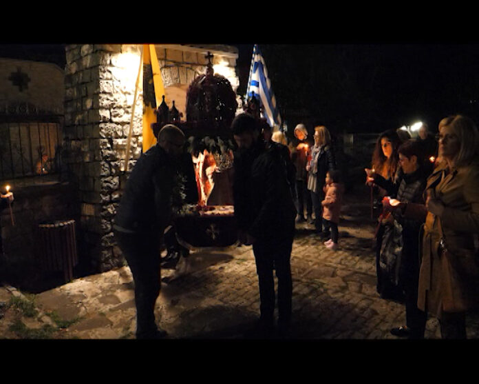Το τελετουργικό ξεκίνησε νωρίς το απόγευμα με την Ακολουθία του Επιταφίου Θρήνου στον Ιερό Ναό Κοίμησης της Θεοτόκου και στη συνέχεια πραγματοποιήθηκε η Περιφορά του Επιταφίου συνοδεία εκατοντάδων κατοίκων και επισκεπτών που συμμετείχαν με συγκίνηση και ευλάβεια ακολουθώντας τη διαδρομή.