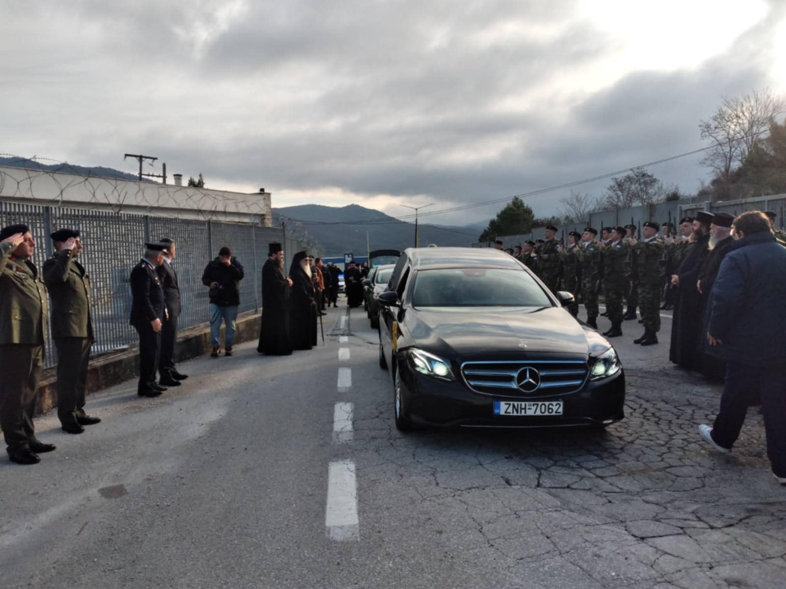 Τιμητικό άγημα της 8ης Μηχανοποιημένης Ταξιαρχίας απέδωσε τιμές ακριβώς μπροστά στην είσοδο του επιμεθόριου φυλακίου, ενώ το σκήνωμα του μακαριστού Ιεράρχη συνόδευσε μέχρι την τελευταία στιγμή που πέρασε στο αλβανικό έδαφος, ο Σεβασμιότατος Μητροπολίτης Ναυπάκτου και Αγίου Βλασίου, αντιπρόεδρος της Ιεράς Συνόδου, κ.κ Ιερόθεος.