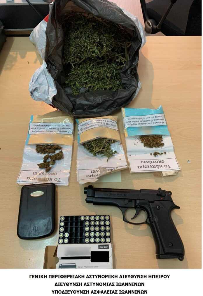 Συνελήφθη το μεσημέρι της Δευτέρας από αστυνομικούς του Τμήματος Δίωξης Ναρκωτικών της Υποδιεύθυνσης Ασφάλειας Ιωαννίνων ημεδαπός, σε βάρος του οποίου σχηματίστηκε δικογραφία για παραβάσεις της νομοθεσίας περί ναρκωτικών και όπλων.