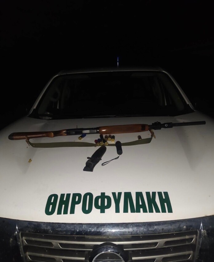 Οι Θηροφύλακες έθεσαν υπό διακριτική παρακολούθηση μία περιοχή και τις νυχτερινές ώρες, εντόπισαν ένα άτομο σε σημείο με καλλιέργειες καλαμποκιού, να βρίσκεται εντός μίας αυτοσχέδιας κατασκευής (φυλάχτρα) και να έχει μαζί του ένα κυνηγετικό όπλο, έτοιμο προς χρήση.