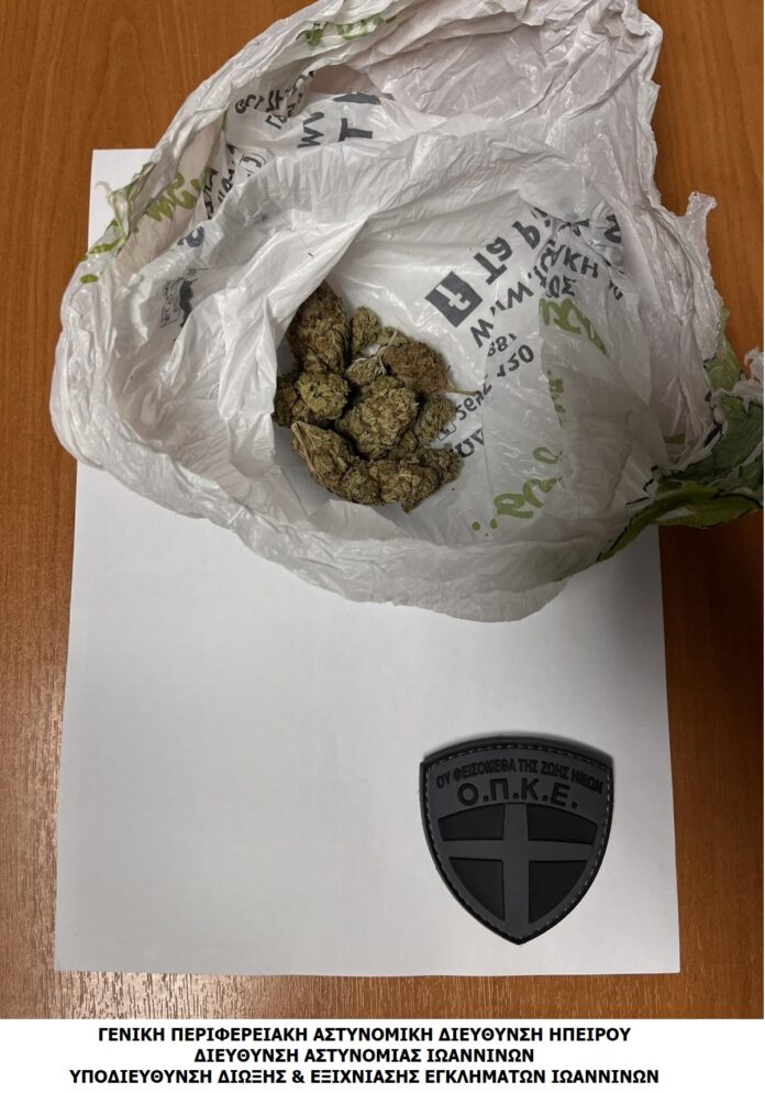Σε έρευνα που ακολούθησε πάνω του αλλά και στην οικία του, εντοπίστηκαν και κατασχέθηκαν 14,2 γραμμάρια ακατέργαστης κάνναβης, ένα ναρκωτικό δισκίο καθώς και μαχαίρι τύπου «karambit» με μήκος 19 εκατοστά.