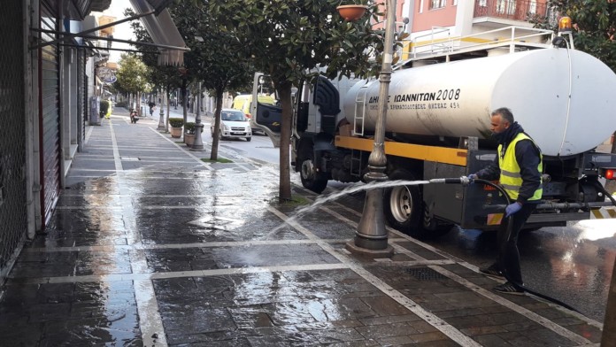 Με εντατικούς ρυθμούς συνεχίζεται από τις υπηρεσίες του Δήμου Ιωαννιτών το πλύσιμο, αλλά και η απολύμανση κοινόχρηστων χώρων.