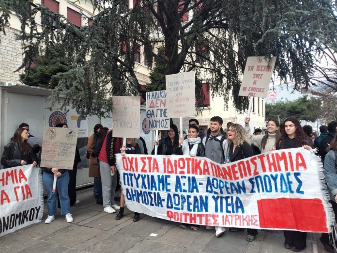 Με αισθητά μειωμένη συμμετοχή σε σχέση με όλες τις προηγούμενες κινητοποιήσεις, η συγκέντρωση και πορεία διαμαρτυρίας για το νέο Νόμο που αναφέρεται στην ίδρυση μη κρατικών πανεπιστημίων και στη στήριξη των δημόσιων πανεπιστημίων, πραγματοποιήθηκε το μεσημέρι της Πέμπτης στο κέντρο της πόλης.