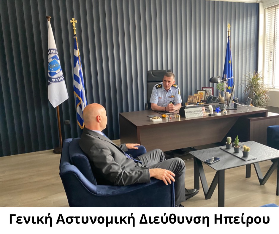 Κατόπιν, επισκέφθηκε τη Γενική Αστυνομική Διεύθυνση Ηπείρου, όπου συνομίλησε με τα στελέχη του Σώματος, τους συνεχάρη για το σπουδαίο έργο τους να κρατούν την πόλη ασφαλή και συναντήθηκε με τον Διευθυντή της Αστυνομικής Διεύθυνσης Ιωαννίνων, Ταξίαρχο Βασίλειο Μουσελίμη, τον Διευθυντή Α.Δ. Ιωαννίνων, Αστυνομικό Διευθυντή κ. Γεώργιο Αζέλη και τον Πρόεδρο της Ένωσης, Άκη Κωσταντινίδη.