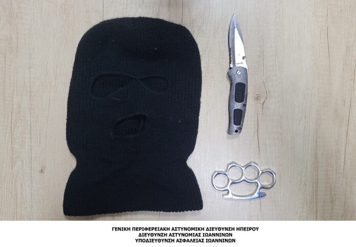 Ειδικότερα, όπως προέκυψε από την αστυνομική έρευνα, στην κατοχή του κατηγορουμένου βρέθηκαν και κατασχέθηκαν αναδιπλούμενος σουγιάς, σιδερογροθιά, καθώς και κουκούλα τύπου “full face” σε απόκρυφο σημείο του σώματός του.
