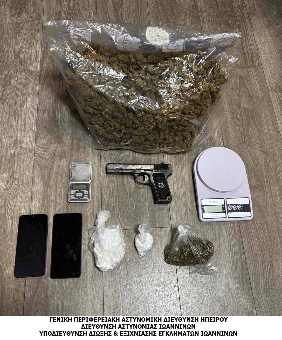Στα Ιωάννινα συνελήφθη χθες βράδυ, 22 Δεκεμβρίου, ένας ημεδαπός από αστυνομικούς του Τμήματος Δίωξης Ναρκωτικών της Υποδιεύθυνσης Δίωξης και Εξιχνίασης Εγκλημάτων Ιωαννίνων, κατηγορούμενος για διακίνηση ναρκωτικών και οπλοκατοχή.