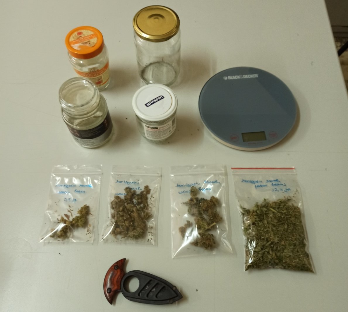 - 8 συσκευασίες με ακατέργαστη κάνναβη, συνολικού βάρους 1 κιλού και 302,6 γραμμαρίων,