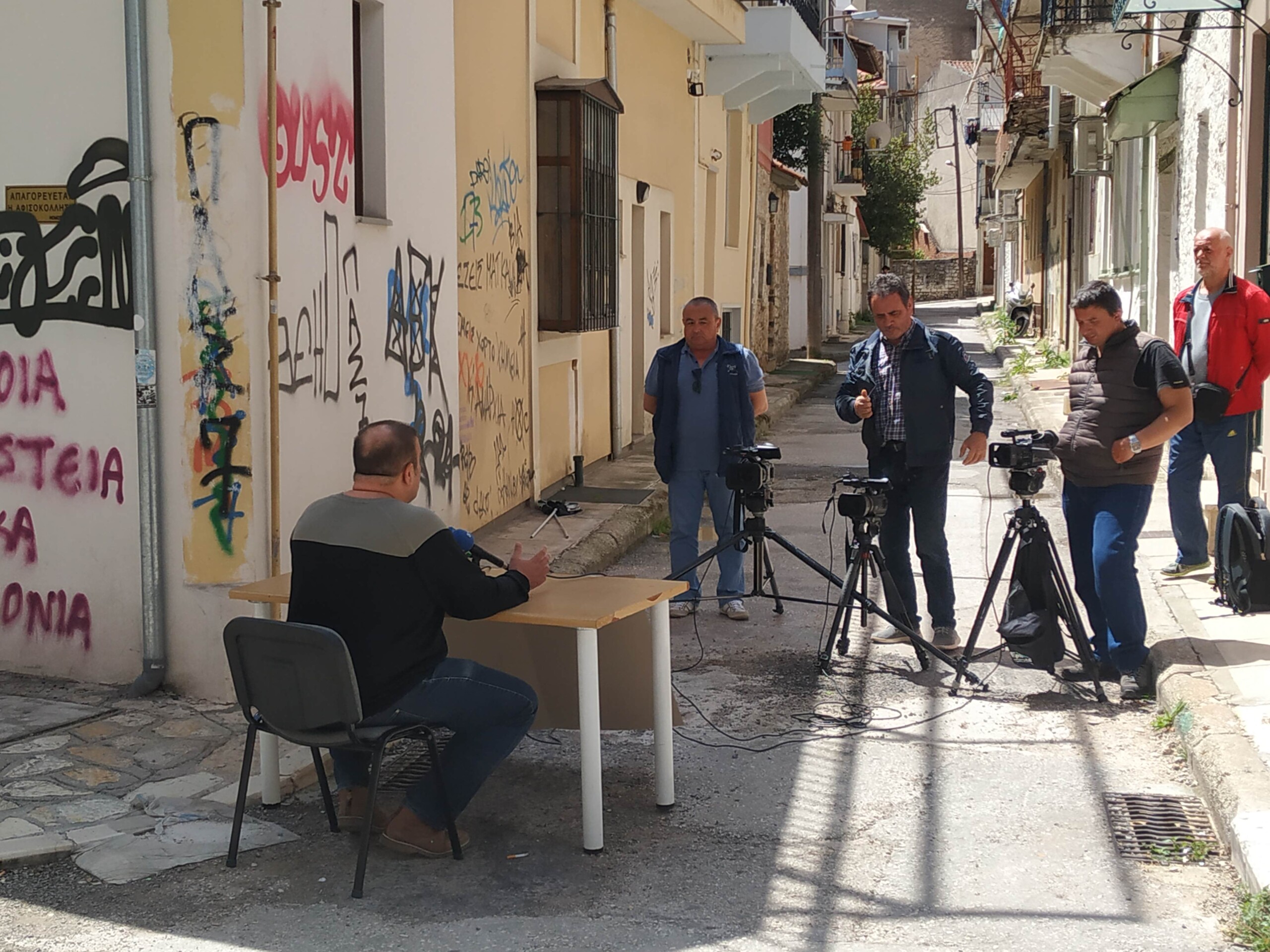 Οι αποστάσεις τηρούνται από όλους, όπως φαίνεται στις φωτογραφίες, με τους συναδέλφους δημοσιογράφους και τους εικονολήπτες των τοπικών σταθμών να δίνουν καθημερινά όλο αυτό το διάστημα τη δική τους μάχη στην ενημέρωση.