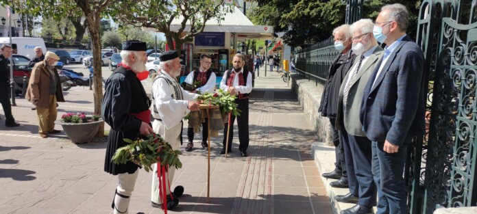 Στην είσοδο του Δημαρχείου ο δήμαρχος και αντιδήμαρχοι άκουσαν τον «Λάζαρο» και από κατοίκους του Ελληνικού και στη συνέχεια αντάλλαξαν ευχές για «Καλό Πάσχα».
