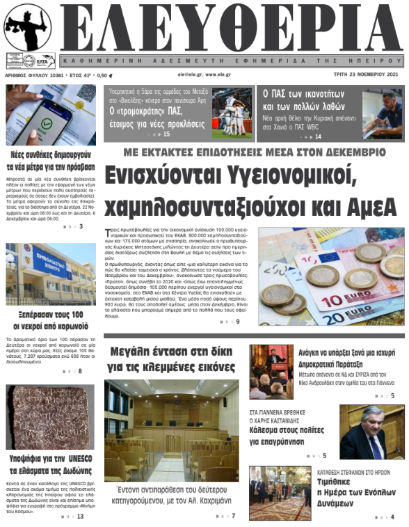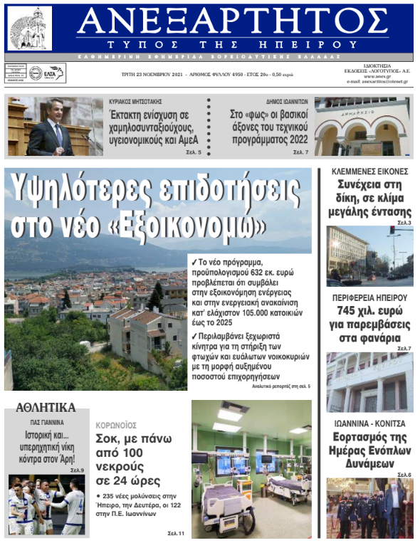Διαβάστε στα πρωτοσέλιδα των γιαννιώτικων εφημερίδων της Τρίτης 23 Νοεμβρίου