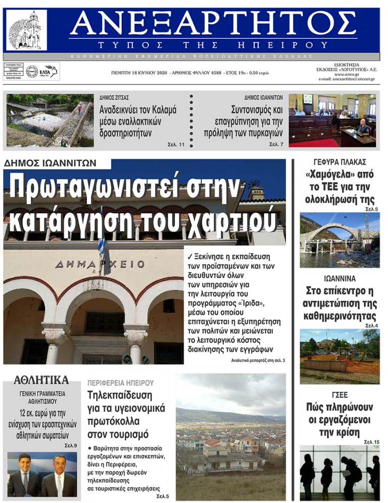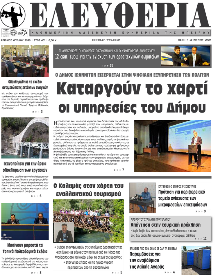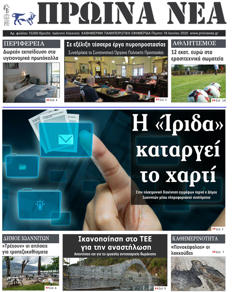 Διαβάστε στα πρωτοσέλιδα των γιαννιώτικων εφημερίδων σήμερα Πέμπτη 18 Ιουνίου