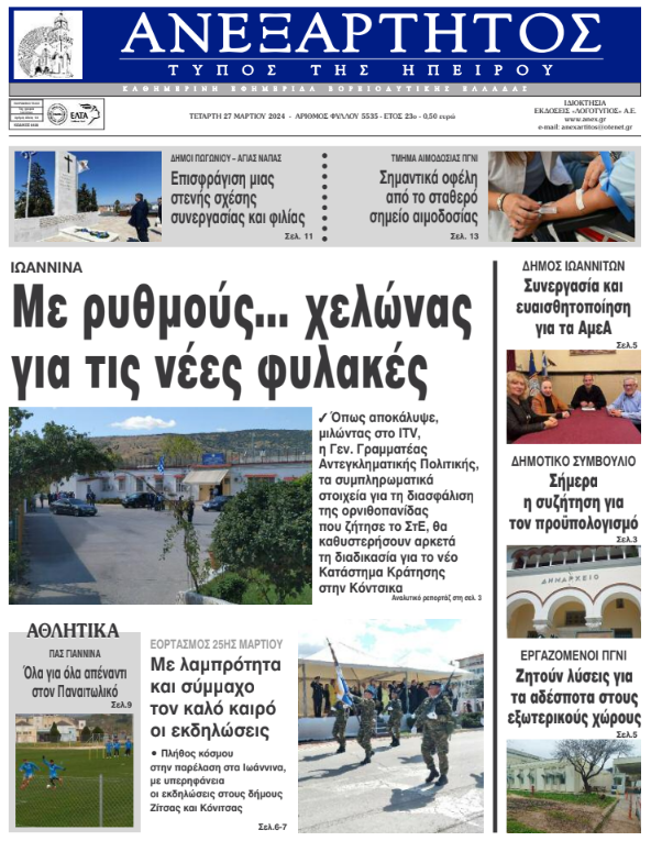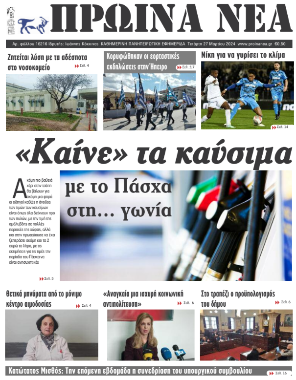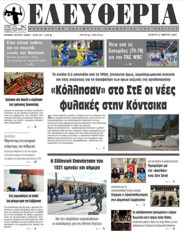 ΑρχικήΕΙΔΗΣΕΙΣΗΠΕΙΡΟΣ ΗΠΕΙΡΟΣ Τα πρωτοσέλιδα των γιαννιώτικων εφημερίδων 27.03.2024 0 FacebookTwitterWhatsAppEmailΤυπώνωViber Διαβάστε στα πρωτοσέλιδα των γιαννιώτικων εφημερίδων της Τετάρτης 27 Μαρτίου TagsΓΙΑΝΝΙΩΤΙΚΕΣ ΕΦΗΜΕΡΙΔΕΣΠΡΩΤΟΣΕΛΙΔΑ FacebookTwitterWhatsAppEmailΤυπώνωViber Προηγούμενο άρθροΗ Ελλάδα αποκλείστηκε στα πέναλτι από τη Γεωργία με 4-2Επόμενο άρθροΣυνεργασία και ευαισθητοποίηση για τα ΑμεΑ ΣΧΕΤΙΚΑ ΑΡΘΡΑ Τα πρωτοσέλιδα των γιαννιώτικων εφημερίδων TOP STORIES 15.11.2025 Τα πρωτοσέλιδα των γιαννιώτικων εφημερίδων ΗΠΕΙΡΟΣ 14.11.2025 Τα πρωτοσέλιδα των γιαννιώτικων εφημερίδων ΗΠΕΙΡΟΣ 13.11.2025 Τα πρωτοσέλιδα των γιαννιώτικων εφημερίδων ΗΠΕΙΡΟΣ 12.11.2025 Τα πρωτοσέλιδα των γιαννιώτικων εφημερίδων ΗΠΕΙΡΟΣ 11.11.2025 Τα πρωτοσέλιδα των γιαννιώτικων εφημερίδων TOP STORIES 08.11.2025 ΣΤΗΝ ΙΔΙΑ ΚΑΤΗΓΟΡΙΑ Ανήλικοι μπήκαν σε σπίτι και έκλεψαν πορτοφόλι ΗΠΕΙΡΟΣ 16.11.2025 Στο νοσοκομείο ανήλικη σε κατάσταση μέθης ΗΠΕΙΡΟΣ 16.11.2025 Τραυματισμός 63χρονης στο μονοπάτι προς τη Μονή Στομίου ΗΠΕΙΡΟΣ 16.11.2025 Να αξιοποιηθεί το πρόγραμμα δωρεάν τσιπαρισμάτων ΗΠΕΙΡΟΣ 16.11.2025 Ένας ζωντανός καθρέφτης της παράδοσης με βλέμμα στο μέλλον ΗΠΕΙΡΟΣ 15.11.2025 Μαθηματική έρευνα και κριτική σκέψη στην εποχή της Τεχνητής Νοημοσύνης ΗΠΕΙΡΟΣ 15.11.2025 ΜΗ ΧΑΣΕΤΕ Ένας ζωντανός καθρέφτης της παράδοσης με βλέμμα στο μέλλον Μαθηματική έρευνα και κριτική σκέψη στην εποχή της Τεχνητής Νοημοσύνης Τα πρωτοσέλιδα των γιαννιώτικων εφημερίδων Εντυπωσιακό το αποτέλεσμα της αναστήλωσης στο τζαμί Καλούτσανης Ενιαίο αστικό πάρκο στις παλιές στρατιωτικές φυλακές ΔΗΜΟΦΙΛΗ Έως 18 Νοεμβρίου οι αιτήσεις κατ’ εξαίρεση μετεγγραφών φοιτητών Στο νοσοκομείο ανήλικη σε κατάσταση μέθης Να αξιοποιηθεί το πρόγραμμα δωρεάν τσιπαρισμάτων ΓΙΑ ΤΗ ΜΕΤΑΒΑΣΗ ΤΩΝ ΑΝΑΠΛΗΡΩΤΩΝ -Εκπτώσεις σε ακτοπλοϊκά και αεροπορικά εισιτήρια Ανήλικοι μπήκαν σε σπίτι και έκλεψαν πορτοφόλι
