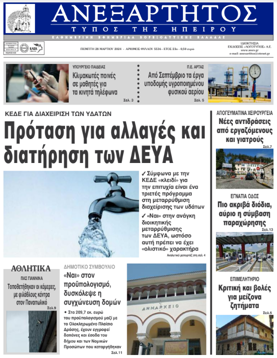 Διαβάστε στα πρωτοσέλιδα των γιαννιώτικων εφημερίδων της Πέμπτης 28 Μαρτίου