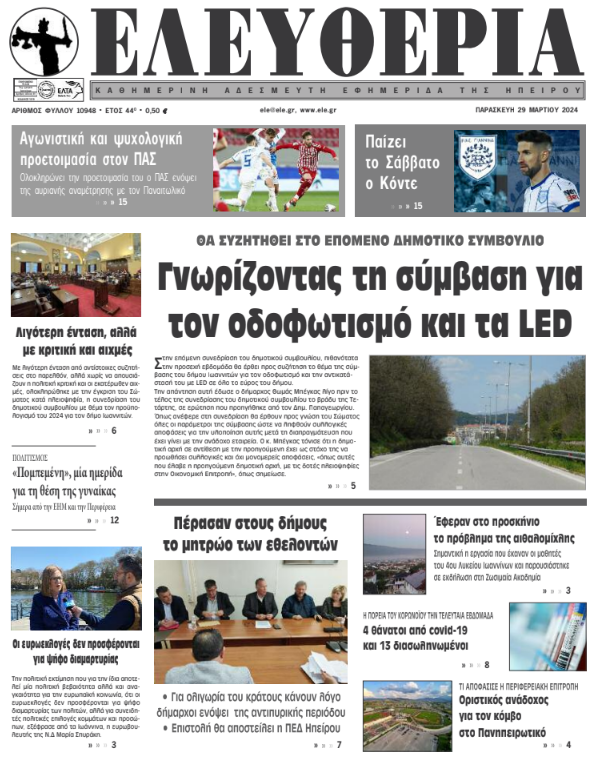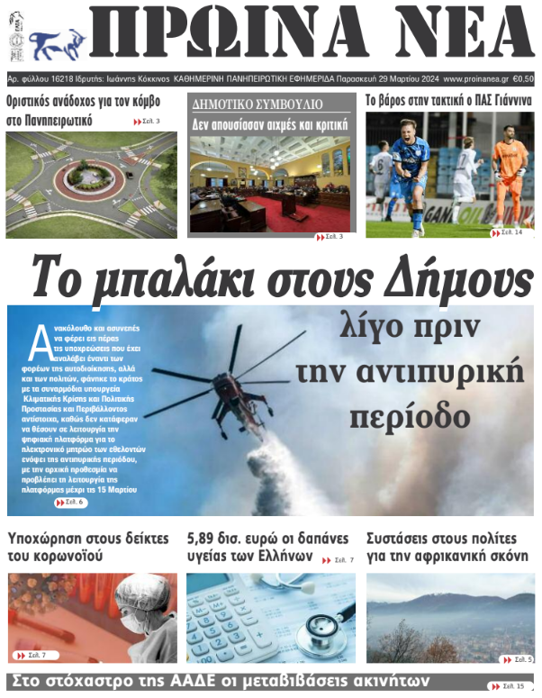 ΑρχικήTOP STORIES TOP STORIESΗΠΕΙΡΟΣ Τα πρωτοσέλιδα των γιαννιώτικων εφημερίδων 29.03.2024 0 FacebookTwitterWhatsAppEmailΤυπώνωViber Διαβάστε στα πρωτοσέλιδα των γιαννιώτικων εφημερίδων της Παρασκευής 29 Μαρτίου TagsΓΙΑΝΝΙΩΤΙΚΕΣ ΕΦΗΜΕΡΙΔΕΣΠΡΩΤΟΣΕΛΙΔΑ FacebookTwitterWhatsAppEmailΤυπώνωViber Προηγούμενο άρθροΣτο νοσοκομείο ο Δημήτρης ΚόκοταςΕπόμενο άρθροΛιγότερη ένταση, αλλά με κριτική και αιχμές ΣΧΕΤΙΚΑ ΑΡΘΡΑ Τα πρωτοσέλιδα των γιαννιώτικων εφημερίδων TOP STORIES 13.11.2025 Τα πρωτοσέλιδα των γιαννιώτικων εφημερίδων ΗΠΕΙΡΟΣ 12.11.2025 Τα πρωτοσέλιδα των γιαννιώτικων εφημερίδων ΗΠΕΙΡΟΣ 11.11.2025 Τα πρωτοσέλιδα των γιαννιώτικων εφημερίδων TOP STORIES 08.11.2025 Τα πρωτοσέλιδα των γιαννιώτικων εφημερίδων ΗΠΕΙΡΟΣ 07.11.2025 Τα πρωτοσέλιδα των γιαννιώτικων εφημερίδων ΗΠΕΙΡΟΣ 06.11.2025 ΣΤΗΝ ΙΔΙΑ ΚΑΤΗΓΟΡΙΑ Ανακοινώσεις του Δημάρχου Αρταίων Χριστ. Σιαφάκα στο Δημοτικό Συμβούλιο ΗΠΕΙΡΟΣ 13.11.2025 Δύο συλλήψεις για διαδοχικές κλοπές από σούπερ-μάρκετ ΗΠΕΙΡΟΣ 13.11.2025 Επιχείρηση της Αστυνομίας Ιωαννίνων στον Πειραιά – Σύλληψη για ναρκωτικά και οπλισμό TOP STORIES 13.11.2025 Τιμητική διάκριση για τον Διευθυντή της Ογκολογικής Κλινικής του ΠΓΝΙ, Στέργιο Μπούσιο ΗΠΕΙΡΟΣ 13.11.2025 Χρηματοδοτείται η επέκταση του Γηροκομείου Φιλιατών ΗΠΕΙΡΟΣ 13.11.2025 Έντονη διαμαρτυρία για την ανακατανομή της έκτακτης καταβολής των ΚΑΠ ΗΠΕΙΡΟΣ 13.11.2025 ΜΗ ΧΑΣΕΤΕ Επιχείρηση της Αστυνομίας Ιωαννίνων στον Πειραιά – Σύλληψη για ναρκωτικά και οπλισμό Δένδρο στην πλατεία, συναυλία στο Πνευματικό Κέντρο; «Λεόντειοι όροι» στη σύμβαση για τα LED Συνεργασία με τον ΟΦΥΠΕΚΑ για το παραλίμνιο μέτωπο του Δήμου Ιωαννιτών Στο… περίμενε οι πυρόπληκτοι του Δήμου Ζηρού ΔΗΜΟΦΙΛΗ Eurobank | 23 χρόνια «Μπροστά για την Παιδεία» – Η Αριστεία στο επίκεντρο Διπλασιάστηκε το ποσοστό παιδιών με υψηλή πίεση Ανακοινώσεις του Δημάρχου Αρταίων Χριστ. Σιαφάκα στο Δημοτικό Συμβούλιο ΟΛΜΕ: Στις 29 Νοεμβρίου η συνέλευση προέδρων των ΕΛΜΕ Μπατακλάν: 10 χρόνια από τη φρικτή τζιχαντιστική επίθεση στο Παρίσι