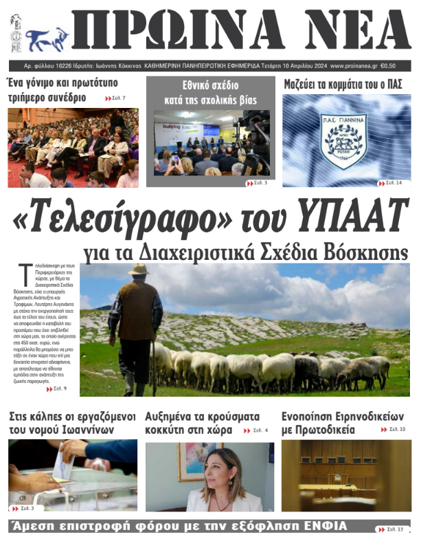 ΑρχικήΕΙΔΗΣΕΙΣΗΠΕΙΡΟΣ ΗΠΕΙΡΟΣ Τα πρωτοσέλιδα των γιαννιώτικων εφημερίδων 10.04.2024 0 FacebookTwitterWhatsAppEmailΤυπώνωViber Διαβάστε στα πρωτοσέλιδα των γιαννιώτικων εφημερίδων της Τετάρτης 10 Απριλίου TagsΓΙΑΝΝΙΩΤΙΚΕΣ ΕΦΗΜΕΡΙΔΕΣΠΡΩΤΟΣΕΛΙΔΑ FacebookTwitterWhatsAppEmailΤυπώνωViber Προηγούμενο άρθροΤο ΠΑΣΟΚ διέγραψε από την κοινοβουλευτική του ομάδα τον Μπουρχάν ΜπαράνΕπόμενο άρθροΑυξήσεις στις συντάξεις, αντιμετώπιση της ακρίβειας ΣΧΕΤΙΚΑ ΑΡΘΡΑ Τα πρωτοσέλιδα των γιαννιώτικων εφημερίδων TOP STORIES 12.12.2025 Τα πρωτοσέλιδα των γιαννιώτικων εφημερίδων ΗΠΕΙΡΟΣ 11.12.2025 Τα πρωτοσέλιδα των γιαννιώτικων εφημερίδων ΗΠΕΙΡΟΣ 10.12.2025 Τα πρωτοσέλιδα των γιαννιώτικων εφημερίδων ΗΠΕΙΡΟΣ 09.12.2025 Τα πρωτοσέλιδα των γιαννιώτικων εφημερίδων ΗΠΕΙΡΟΣ 06.12.2025 Τα πρωτοσέλιδα των γιαννιώτικων εφημερίδων ΗΠΕΙΡΟΣ 05.12.2025 ΣΤΗΝ ΙΔΙΑ ΚΑΤΗΓΟΡΙΑ Ζητούνται άμεσες λύσεις για την αιθαλομίχλη – Συνεχίζεται η σιωπή του ΥΠΕΝ ΗΠΕΙΡΟΣ 12.12.2025 Μπέγκας: Άμεση ενεργοποίηση μέτρων κατά της αιθαλομίχλης – Η πόλη δεν μπορεί να περιμένει ΗΠΕΙΡΟΣ 12.12.2025 Παρέμβαση του Δήμου Β. Τζουμέρκων για το νέο θεσμικό πλαίσιο περί κοινωφελών περιουσιών και κληροδοτημάτων ΗΠΕΙΡΟΣ 12.12.2025 Έκθεση αρχιτεκτονικών προτάσεων για τη Δημοτική Αγορά Αγ. Μαρίνας ΗΠΕΙΡΟΣ 12.12.2025 Γιορτή Υιοθεσίας Αδέσποτων Ζώων στο Πάρκο Λιθαρίτσια ΗΠΕΙΡΟΣ 12.12.2025 Τρόφιμα και είδη πρώτης ανάγκης για τα Παιδικά Χωριά SOS ΗΠΕΙΡΟΣ 12.12.2025 ΜΗ ΧΑΣΕΤΕ Μητσοτάκης: Τη Δευτέρα περιμένω στο γραφείο μου αντιπροσωπεία αγροτών Μπέγκας: Άμεση ενεργοποίηση μέτρων κατά της αιθαλομίχλης – Η πόλη δεν μπορεί να περιμένει Έκθεση αρχιτεκτονικών προτάσεων για τη Δημοτική Αγορά Αγ. Μαρίνας Συντάξεις Ιανουαρίου: Από τις 19 Δεκεμβρίου ξεκινά η καταβολή τους «Μέρα με τη νύχτα» το παραλίμνιο οδικό δίκτυο ΔΗΜΟΦΙΛΗ Τα του Καίσαρος… Έκθεση αρχιτεκτονικών προτάσεων για τη Δημοτική Αγορά Αγ. Μαρίνας Κομισιόν: Τα θετικά και τα αρνητικά του ελληνικού φορολογικού συστήματος «Μέρα με τη νύχτα» το παραλίμνιο οδικό δίκτυο Κρίσιμες ώρες για τον ΠΑΣ με το βλέμμα στην Καρδίτσα