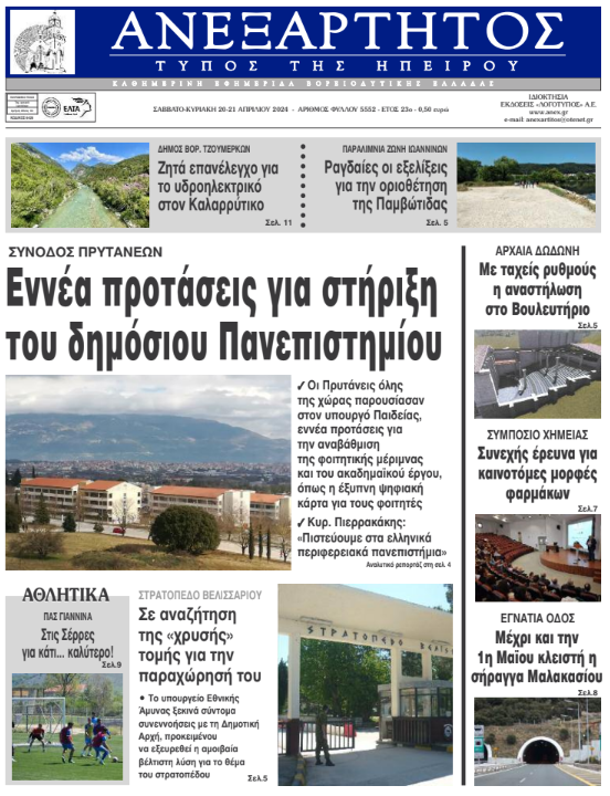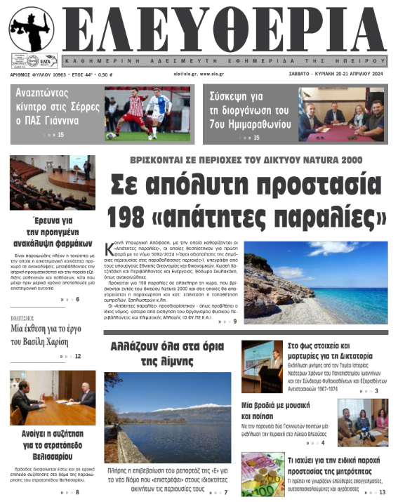ΑρχικήΕΙΔΗΣΕΙΣΗΠΕΙΡΟΣ ΗΠΕΙΡΟΣ Τα πρωτοσέλιδα των γιαννιώτικων εφημερίδων 20.04.2024 0 FacebookTwitterWhatsAppEmailΤυπώνωViber Διαβάστε στα πρωτοσέλιδα των γιαννιώτικων εφημερίδων 20-21 Απριλίου TagsΓΙΑΝΝΙΩΤΙΚΕΣ ΕΦΗΜΕΡΙΔΕΣΠΡΩΤΟΣΕΛΙΔΑ FacebookTwitterWhatsAppEmailΤυπώνωViber Προηγούμενο άρθροΈρευνα για την προηγμένη ανακάλυψη φαρμάκωνΕπόμενο άρθρο«Η Καρδιά του Σκότους» στην Γκαλερί 3Portes ΣΧΕΤΙΚΑ ΑΡΘΡΑ Τα πρωτοσέλιδα των γιαννιώτικων εφημερίδων TOP STORIES 14.11.2025 Τα πρωτοσέλιδα των γιαννιώτικων εφημερίδων ΗΠΕΙΡΟΣ 13.11.2025 Τα πρωτοσέλιδα των γιαννιώτικων εφημερίδων ΗΠΕΙΡΟΣ 12.11.2025 Τα πρωτοσέλιδα των γιαννιώτικων εφημερίδων ΗΠΕΙΡΟΣ 11.11.2025 Τα πρωτοσέλιδα των γιαννιώτικων εφημερίδων TOP STORIES 08.11.2025 Τα πρωτοσέλιδα των γιαννιώτικων εφημερίδων ΗΠΕΙΡΟΣ 07.11.2025 ΣΤΗΝ ΙΔΙΑ ΚΑΤΗΓΟΡΙΑ Εκλογή του Παναγιώτη Σουκάκου στην Ακαδημία Αθηνών ΗΠΕΙΡΟΣ 14.11.2025 Εντυπωσιακό το αποτέλεσμα της αναστήλωσης στο τζαμί Καλούτσανης ΗΠΕΙΡΟΣ 14.11.2025 Παγκόσμια Ημέρα Προωρότητας: Μήνυμα ευαισθητοποίησης από το «Χατζηκώστα» και τον Δήμο Ιωαννιτών ΗΠΕΙΡΟΣ 14.11.2025 Ηγουμενίτσα: Κατασχέθηκαν πάνω από 350 κιλά κάνναβης σε κοινή επιχείρηση Λιμενικού και Δίωξης ΗΠΕΙΡΟΣ 14.11.2025 Άρτα: Σύλληψη για επικίνδυνη οδήγηση και σωματική βλάβη από αμέλεια ΗΠΕΙΡΟΣ 14.11.2025 Συνελήφθη ημεδαπός στα Ιωάννινα για διακεκριμένες κλοπές ΗΠΕΙΡΟΣ 14.11.2025 ΜΗ ΧΑΣΕΤΕ Εντυπωσιακό το αποτέλεσμα της αναστήλωσης στο τζαμί Καλούτσανης Ενιαίο αστικό πάρκο στις παλιές στρατιωτικές φυλακές Τα πρωτοσέλιδα των γιαννιώτικων εφημερίδων Επιχείρηση της Αστυνομίας Ιωαννίνων στον Πειραιά – Σύλληψη για ναρκωτικά και οπλισμό Δένδρο στην πλατεία, συναυλία στο Πνευματικό Κέντρο; ΔΗΜΟΦΙΛΗ Αποφασισμένοι να τα αλλάξουν όλα «Κλειστά» ακίνητα: Σε ισχύ οι φοροαπαλλαγές αν νοικιαστούν έως το τέλος του 2026 Αιτήσεις κατ’ εξαίρεση μετεγγραφών φοιτητών Εντυπωσιακό το αποτέλεσμα της αναστήλωσης στο τζαμί Καλούτσανης Ανδρουλάκης: Μονόδρομος η πολιτική αλλαγή
