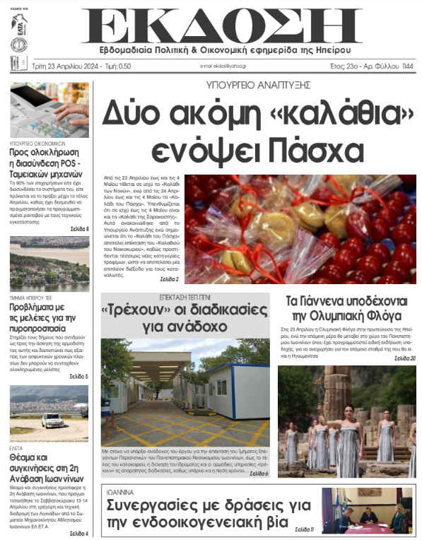 ΑρχικήΕΙΔΗΣΕΙΣΗΠΕΙΡΟΣ ΗΠΕΙΡΟΣ Τα πρωτοσέλιδα των γιαννιώτικων εφημερίδων 23.04.2024 0 FacebookTwitterWhatsAppEmailΤυπώνωViber Διαβάστε στα πρωτοσέλιδα των γιαννιώτικων εφημερίδων της Τρίτης 23 Απριλίου TagsΓΙΑΝΝΙΩΤΙΚΕΣ ΕΦΗΜΕΡΙΔΕΣΠΡΩΤΟΣΕΛΙΔΑ FacebookTwitterWhatsAppEmailΤυπώνωViber Προηγούμενο άρθροΙσχυρή αμμοθύελλα καθήλωσε όλα τα αεροσκάφη στην ανατολική Λιβύη (βίντεο)Επόμενο άρθροΝέο… τηλεγράφημα ΣΧΕΤΙΚΑ ΑΡΘΡΑ Τα πρωτοσέλιδα των γιαννιώτικων εφημερίδων TOP STORIES 22.11.2025 Τα πρωτοσέλιδα των γιαννιώτικων εφημερίδων ΗΠΕΙΡΟΣ 21.11.2025 Τα πρωτοσέλιδα των γιαννιώτικων εφημερίδων TOP STORIES 20.11.2025 Τα πρωτοσέλιδα των γιαννιώτικων εφημερίδων ΗΠΕΙΡΟΣ 19.11.2025 Τα πρωτοσέλιδα των γιαννιώτικων εφημερίδων ΗΠΕΙΡΟΣ 18.11.2025 Τα πρωτοσέλιδα των γιαννιώτικων εφημερίδων ΗΠΕΙΡΟΣ 15.11.2025 ΣΤΗΝ ΙΔΙΑ ΚΑΤΗΓΟΡΙΑ Τα πρωτοσέλιδα των γιαννιώτικων εφημερίδων TOP STORIES 22.11.2025 Ημέρα Ενόπλων Δυνάμεων με αποκαλυπτήρια προτομών ΗΠΕΙΡΟΣ 21.11.2025 Έρευνες για φόλες στα Τζουμέρκα μετά τον θάνατο κυνηγετικών σκύλων ΗΠΕΙΡΟΣ 21.11.2025 Σε δημόσια πρόσκληση για την αξιοποίηση του Ξενία Ηγουμενίτσας προχωρά η ΕΤΑΔ ΗΠΕΙΡΟΣ 21.11.2025 Ήχησε το «112» στα Ιωάννινα ΗΠΕΙΡΟΣ 21.11.2025 Υπερχείλιση του Αράχθου στην Πλάκα – Φερτά υλικά κάλυψαν τη γέφυρα Μπέλεϋ ΗΠΕΙΡΟΣ 21.11.2025 ΜΗ ΧΑΣΕΤΕ Ικανοποίηση για τη μείωση της ανεργίας Τα πρωτοσέλιδα των γιαννιώτικων εφημερίδων Ημέρα Ενόπλων Δυνάμεων με αποκαλυπτήρια προτομών Ήχησε το «112» στα Ιωάννινα Υπερχείλιση του Αράχθου στην Πλάκα – Φερτά υλικά κάλυψαν τη γέφυρα Μπέλεϋ ΔΗΜΟΦΙΛΗ Ικανοποίηση για τη μείωση της ανεργίας Τα πρωτοσέλιδα των γιαννιώτικων εφημερίδων Τα του Καίσαρος… ΥΠΕΡ e-ΕΦΚΑ -Επιστροφή αχρεωστήτως καταβληθέντων Νέα μέτρα προστασίας της κτηνοτροφίας