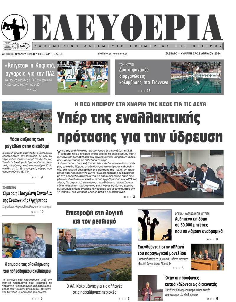 ΑρχικήΕΙΔΗΣΕΙΣΗΠΕΙΡΟΣ ΗΠΕΙΡΟΣ Τα πρωτοσέλιδα των γιαννιώτικων εφημερίδων 29.04.2024 0 FacebookTwitterWhatsAppEmailΤυπώνωViber Διαβάστε στα πρωτοσέλιδα των γιαννιώτικων εφημερίδων του Σαββατοκύριακου 27-28 Απριλίου TagsΓΙΑΝΝΙΩΤΙΚΕΣ ΕΦΗΜΕΡΙΔΕΣΠΡΩΤΟΣΕΛΙΔΑ FacebookTwitterWhatsAppEmailΤυπώνωViber Προηγούμενο άρθροΕΟΠΥΥ: Ο κατάλογος με τα ακριβά φάρμακα που δεν θα είναι διαθέσιμα τις ημέρες του ΠάσχαΕπόμενο άρθροΜΕΡΟΠΗ ΤΖΟΥΦΗ -Η ιδιωτικοποίηση βλάπτει σοβαρά την… υγεία και την παιδεία ΣΧΕΤΙΚΑ ΑΡΘΡΑ Τα πρωτοσέλιδα των γιαννιώτικων εφημερίδων TOP STORIES 22.11.2025 Τα πρωτοσέλιδα των γιαννιώτικων εφημερίδων ΗΠΕΙΡΟΣ 21.11.2025 Τα πρωτοσέλιδα των γιαννιώτικων εφημερίδων TOP STORIES 20.11.2025 Τα πρωτοσέλιδα των γιαννιώτικων εφημερίδων ΗΠΕΙΡΟΣ 19.11.2025 Τα πρωτοσέλιδα των γιαννιώτικων εφημερίδων ΗΠΕΙΡΟΣ 18.11.2025 Τα πρωτοσέλιδα των γιαννιώτικων εφημερίδων ΗΠΕΙΡΟΣ 15.11.2025 ΣΤΗΝ ΙΔΙΑ ΚΑΤΗΓΟΡΙΑ Τα πρωτοσέλιδα των γιαννιώτικων εφημερίδων TOP STORIES 22.11.2025 Ημέρα Ενόπλων Δυνάμεων με αποκαλυπτήρια προτομών ΗΠΕΙΡΟΣ 21.11.2025 Έρευνες για φόλες στα Τζουμέρκα μετά τον θάνατο κυνηγετικών σκύλων ΗΠΕΙΡΟΣ 21.11.2025 Σε δημόσια πρόσκληση για την αξιοποίηση του Ξενία Ηγουμενίτσας προχωρά η ΕΤΑΔ ΗΠΕΙΡΟΣ 21.11.2025 Ήχησε το «112» στα Ιωάννινα ΗΠΕΙΡΟΣ 21.11.2025 Υπερχείλιση του Αράχθου στην Πλάκα – Φερτά υλικά κάλυψαν τη γέφυρα Μπέλεϋ ΗΠΕΙΡΟΣ 21.11.2025 ΜΗ ΧΑΣΕΤΕ Ικανοποίηση για τη μείωση της ανεργίας Τα πρωτοσέλιδα των γιαννιώτικων εφημερίδων Ημέρα Ενόπλων Δυνάμεων με αποκαλυπτήρια προτομών Ήχησε το «112» στα Ιωάννινα Υπερχείλιση του Αράχθου στην Πλάκα – Φερτά υλικά κάλυψαν τη γέφυρα Μπέλεϋ ΔΗΜΟΦΙΛΗ Ικανοποίηση για τη μείωση της ανεργίας Νέα μέτρα προστασίας της κτηνοτροφίας 22.698 εγγεγραμμένοι άνεργοι τον Οκτώβριο στην Ήπειρο ΥΠΕΡ e-ΕΦΚΑ -Επιστροφή αχρεωστήτως καταβληθέντων Τα του Καίσαρος…