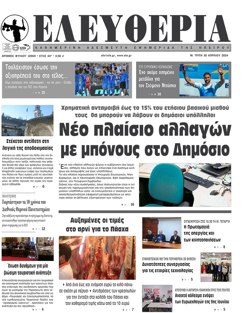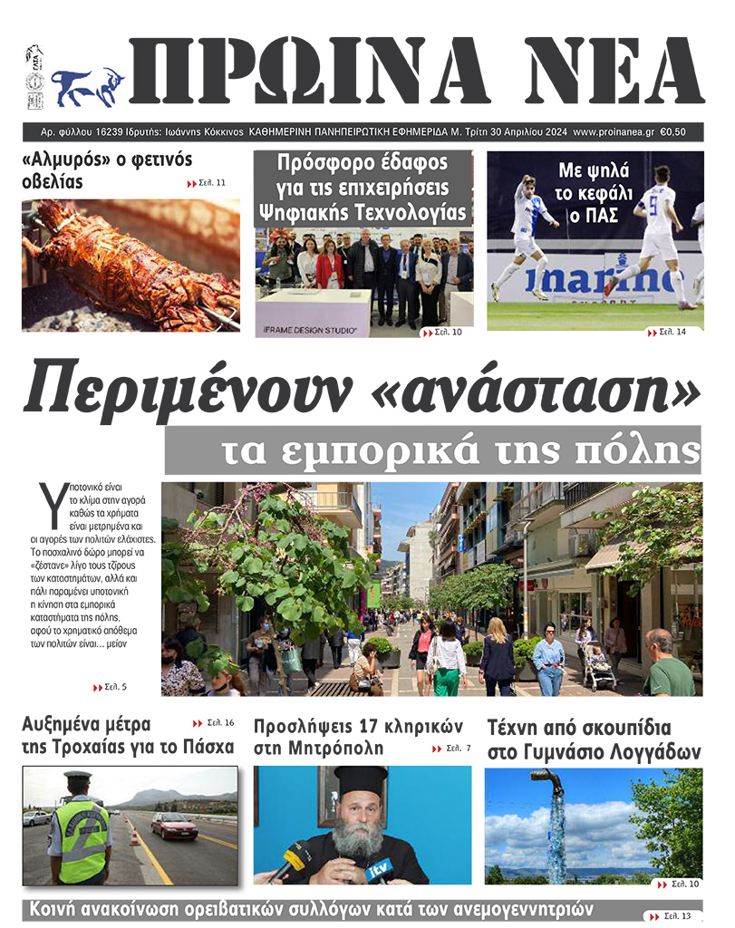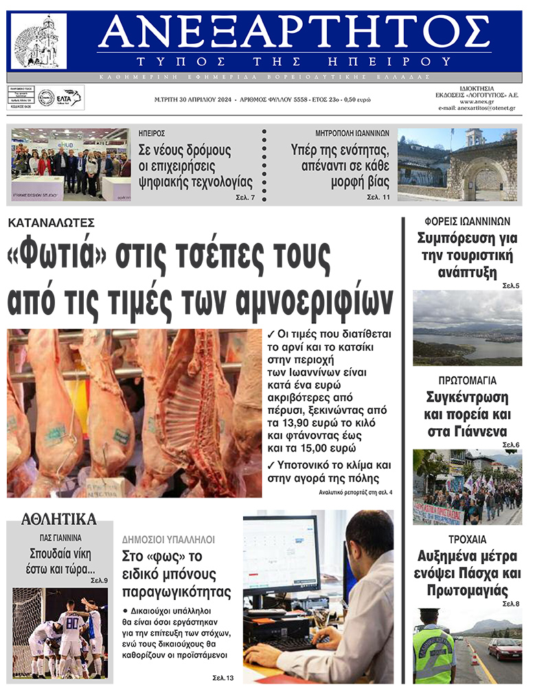 ΑρχικήΕΙΔΗΣΕΙΣΗΠΕΙΡΟΣ ΗΠΕΙΡΟΣ Τα πρωτοσέλιδα των γιαννιώτικων εφημερίδων 30.04.2024 0 FacebookTwitterWhatsAppEmailΤυπώνωViber Διαβάστε στα πρωτοσέλιδα των γιαννιώτικων εφημερίδων της Τρίτης 30 Απριλίου TagsΓΙΑΝΝΙΩΤΙΚΕΣ ΕΦΗΜΕΡΙΔΕΣΠΡΩΤΟΣΕΛΙΔΑ FacebookTwitterWhatsAppEmailΤυπώνωViber Προηγούμενο άρθροΤα του ΚαίσαροςΕπόμενο άρθροΆνδρας με σπαθί στο Λονδίνο τραυμάτισε δύο αστυνομικούς και περαστικούς ΣΧΕΤΙΚΑ ΑΡΘΡΑ Τα πρωτοσέλιδα των γιαννιώτικων εφημερίδων TOP STORIES 03.12.2025 Τα πρωτοσέλιδα των γιαννιώτικων εφημερίδων TOP STORIES 02.12.2025 Τα πρωτοσέλιδα των γιαννιώτικων εφημερίδων ΗΠΕΙΡΟΣ 29.11.2025 Τα πρωτοσέλιδα των γιαννιώτικων εφημερίδων ΗΠΕΙΡΟΣ 28.11.2025 Τα πρωτοσέλιδα των γιαννιώτικων εφημερίδων ΗΠΕΙΡΟΣ 27.11.2025 Τα πρωτοσέλιδα των γιαννιώτικων εφημερίδων ΗΠΕΙΡΟΣ 26.11.2025 ΣΤΗΝ ΙΔΙΑ ΚΑΤΗΓΟΡΙΑ «Όλοι μαζί, χωρίς εμπόδια» ΗΠΕΙΡΟΣ 03.12.2025 Με μηνύσεις «απαντά» η Περιφέρεια Ηπείρου ΗΠΕΙΡΟΣ 03.12.2025 Εθελοντική αιμοδοσία στην Περιφέρεια Ηπείρου ΗΠΕΙΡΟΣ 03.12.2025 Συνεχίζονται οι κινητοποιήσεις των αγροτών στο μπλόκο Καλπακίου ΗΠΕΙΡΟΣ 03.12.2025 Δράσεις για την Παγκόσμια Ημέρα Ατόμων με Αναπηρία ΗΠΕΙΡΟΣ 03.12.2025 Συντονισμός για την αντιμετώπιση έντονων καιρικών φαινομένων ΗΠΕΙΡΟΣ 03.12.2025 ΜΗ ΧΑΣΕΤΕ Με μηνύσεις «απαντά» η Περιφέρεια Ηπείρου Συνεχίζονται οι κινητοποιήσεις των αγροτών στο μπλόκο Καλπακίου Συντονισμός για την αντιμετώπιση έντονων καιρικών φαινομένων Έκτακτο δελτίο της ΕΜΥ για καταιγίδες, χαλαζοπτώσεις και ισχυρούς ανέμους Αγέλες αδέσποτων προκαλούν καθυστερήσεις στη διανομή των ΕΛΤΑ ΔΗΜΟΦΙΛΗ Η ΑΔΕΔΥ Ιωαννίνων στηρίζει τις αγροτικές κινητοποιήσεις Συνελήφθη φυγόποινος στην Άρτα Τα του Καίσαρος… Χονγκ Κονγκ: Στους 159 οι νεκροί, ανάμεσά τους βρέφος ενός έτους – 30 αγνοούμενοι Εθελοντική αιμοδοσία στην Περιφέρεια Ηπείρου