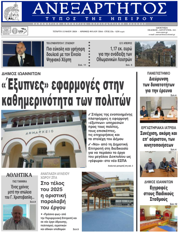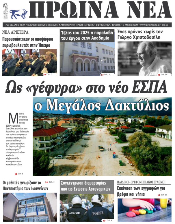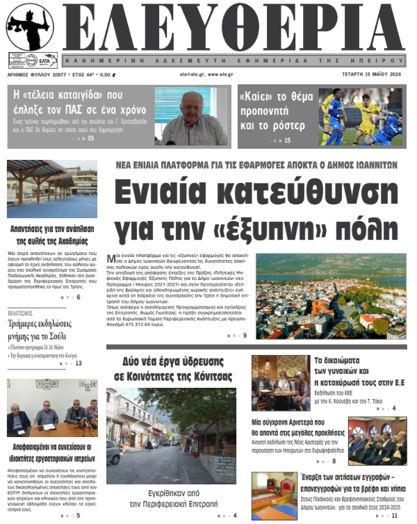 Διαβάστε στα πρωτοσέλιδα των γιαννιώτικων εφημερίδων της Τετάρτης 15 Μαΐου