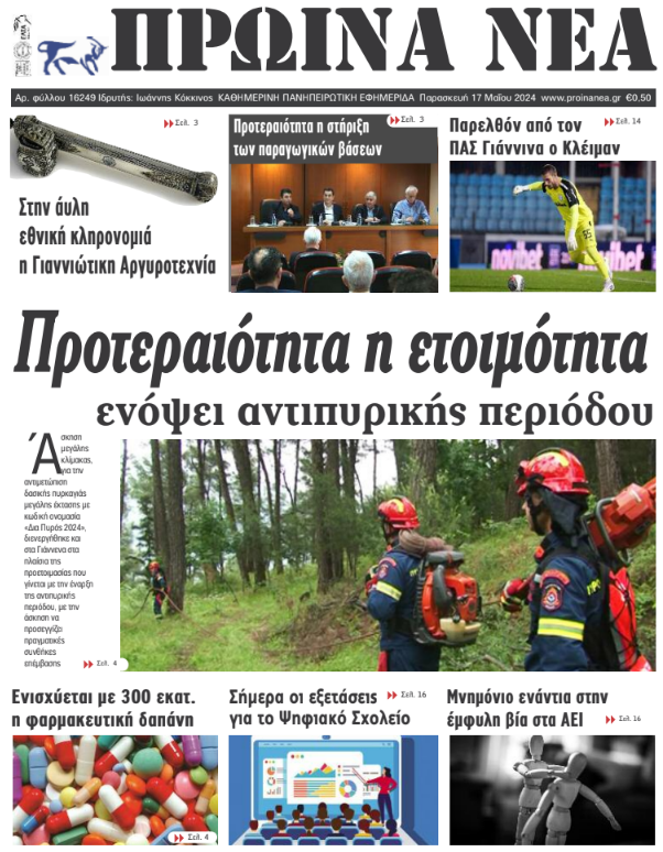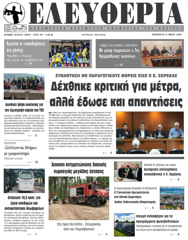 Διαβάστε στα πρωτοσέλιδα των γιαννιώτικων εφημερίδων της Παρασκευής 17 Μαΐου