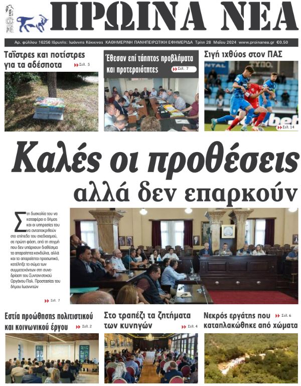 Διαβάστε στα πρωτοσέλιδα των γιαννιώτικων εφημερίδων της Τρίτης 28 Μαΐου