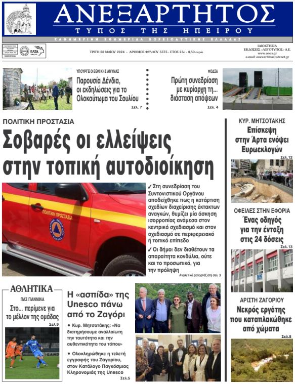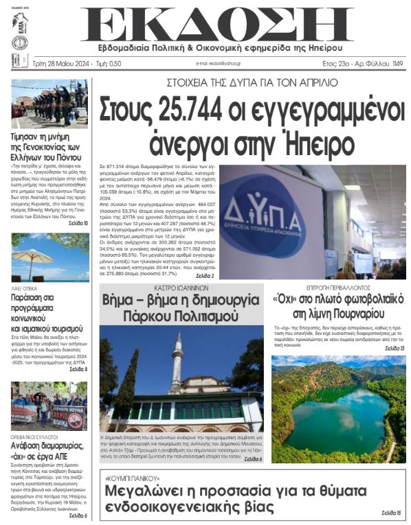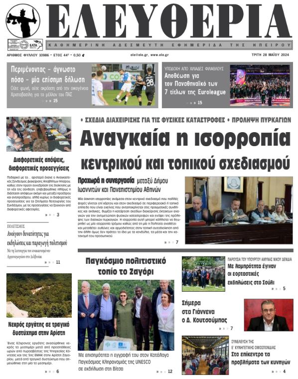 Διαβάστε στα πρωτοσέλιδα των γιαννιώτικων εφημερίδων της Τρίτης 28 Μαΐου