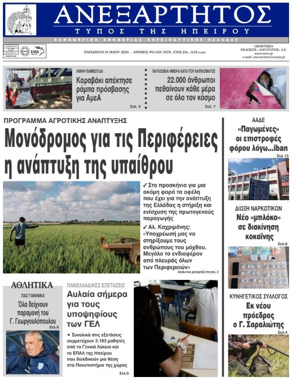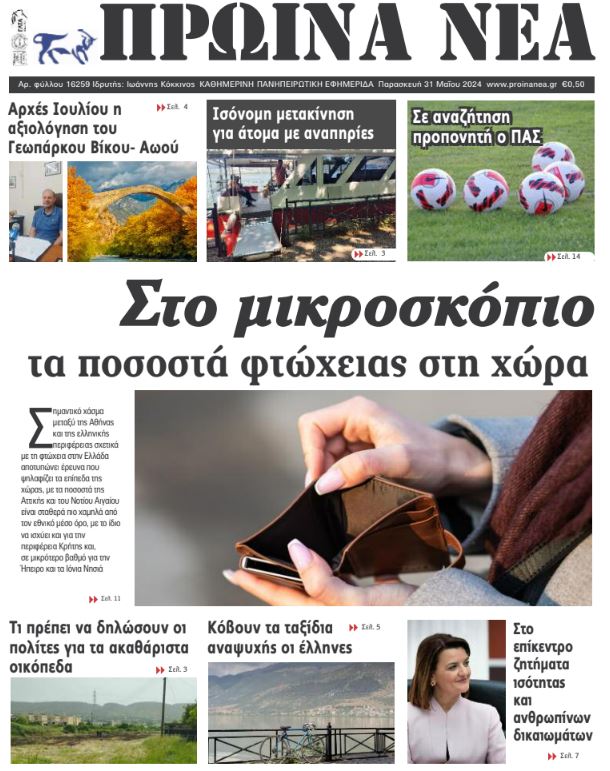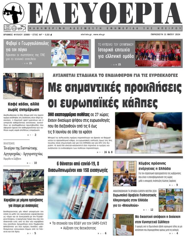 ΑρχικήΕΙΔΗΣΕΙΣΗΠΕΙΡΟΣ ΗΠΕΙΡΟΣ Τα πρωτοσέλιδα των γιαννιώτικων εφημερίδων 31.05.2024 0 FacebookTwitterWhatsAppEmailΤυπώνωViber Διαβάστε στα πρωτοσέλιδα των γιαννιώτικων εφημερίδων της Παρασκευής 31 Μαΐου TagsΓΙΑΝΝΙΩΤΙΚΕΣ ΕΦΗΜΕΡΙΔΕΣΠΡΩΤΟΣΕΛΙΔΑ FacebookTwitterWhatsAppEmailΤυπώνωViber Προηγούμενο άρθροΝέα Υόρκη: Επίθεση με μαχαίρι μέρα μεσημέρι στην Times SquareΕπόμενο άρθροΗ Γ.Σ της Ε’ ΚΟΗ στην εκπομπή «Περιβάλλον – Κυνήγι, μύθοι και αλήθειες» ΣΧΕΤΙΚΑ ΑΡΘΡΑ Τα πρωτοσέλιδα των γιαννιώτικων εφημερίδων TOP STORIES 28.11.2025 Τα πρωτοσέλιδα των γιαννιώτικων εφημερίδων ΗΠΕΙΡΟΣ 27.11.2025 Τα πρωτοσέλιδα των γιαννιώτικων εφημερίδων ΗΠΕΙΡΟΣ 26.11.2025 Τα πρωτοσέλιδα των γιαννιώτικων εφημερίδων ΗΠΕΙΡΟΣ 25.11.2025 Τα πρωτοσέλιδα των γιαννιώτικων εφημερίδων ΗΠΕΙΡΟΣ 22.11.2025 Τα πρωτοσέλιδα των γιαννιώτικων εφημερίδων ΗΠΕΙΡΟΣ 21.11.2025 ΣΤΗΝ ΙΔΙΑ ΚΑΤΗΓΟΡΙΑ Διαγωνισμός για έργα ενεργειακής αναβάθμισης στο ΠΓΝΙ ΗΠΕΙΡΟΣ 28.11.2025 Εισροή νερού σε δύο χειρουργικές αίθουσες στο νοσοκομείο «Χατζηκώστα» ΗΠΕΙΡΟΣ 28.11.2025 Άρτα: Αλλοδαπός έκλεψε 850 ευρώ από ηλικιωμένο ΗΠΕΙΡΟΣ 28.11.2025 Κοινός τόπος η ανάγκη εξάλειψης της βίας κατά των γυναικών ΗΠΕΙΡΟΣ 28.11.2025 Νέες κατολισθήσεις στα Τζουμέρκα μετά την κακοκαιρία ΗΠΕΙΡΟΣ 28.11.2025 Εμφανίστηκε ξανά η εποχική λίμνη Βρέλλη ΗΠΕΙΡΟΣ 28.11.2025 ΜΗ ΧΑΣΕΤΕ Σήμερα η επιστροφή ενοικίου στους δικαιούχους Σήμερα η «Black Friday»: Τι πρέπει να προσέξετε στις αγορές σας Νέες κατολισθήσεις στα Τζουμέρκα μετά την κακοκαιρία Εμφανίστηκε ξανά η εποχική λίμνη Βρέλλη Επιδόματα και προσλήψεις στο συνέδριο δικαστικών υπαλλήλων ΔΗΜΟΦΙΛΗ Απογραφή ανελκυστήρων: Παρατείνεται η προθεσμία μέχρι τις 30 Ιουνίου 2026 Χονγκ Κονγκ: Στους 94 οι νεκροί από την πυρκαγιά σε συγκρότημα πολυκατοικιών Ένα αφρικανικό εργαστήριο προετοιμάζεται για την επόμενη πανδημία Διαστημική αύξηση στον ευρωπαϊκό προϋπολογισμό για το… διάστημα Άρτα: Αλλοδαπός έκλεψε 850 ευρώ από ηλικιωμένο
