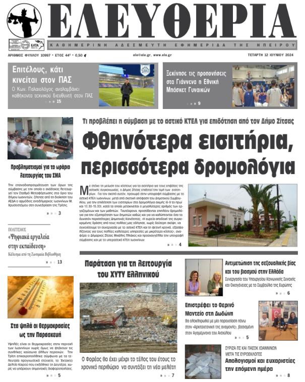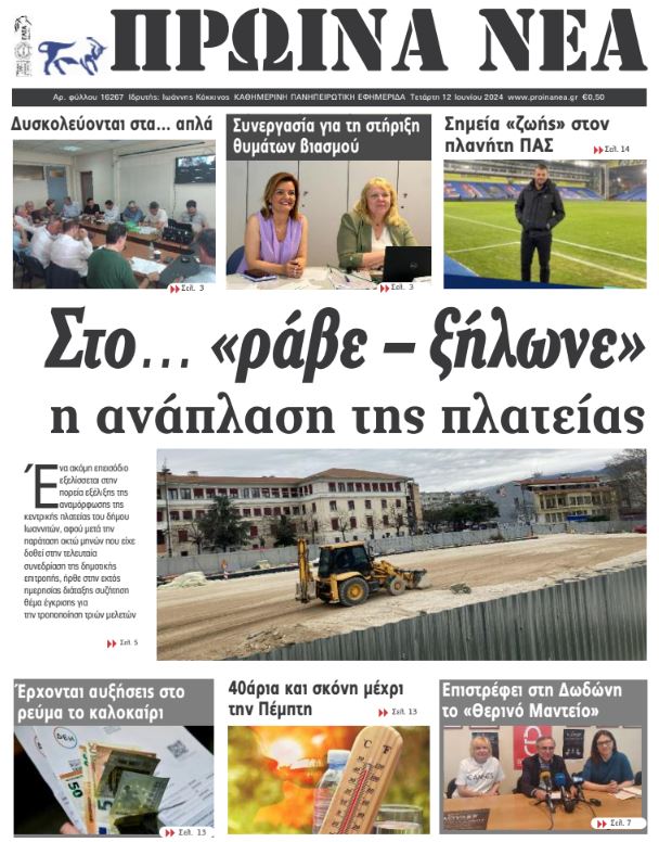 ΑρχικήΕΙΔΗΣΕΙΣΗΠΕΙΡΟΣ ΗΠΕΙΡΟΣ Τα πρωτοσέλιδα των γιαννιώτικων εφημερίδων 12.06.2024 0 FacebookTwitterWhatsAppEmailΤυπώνωViber Διαβάστε στα πρωτοσέλιδα των γιαννιώτικων εφημερίδων της Τετάρτης 12 Ιουνίου TagsΓΙΑΝΝΙΩΤΙΚΕΣ ΕΦΗΜΕΡΙΔΕΣΠΡΩΤΟΣΕΛΙΔΑ FacebookTwitterWhatsAppEmailΤυπώνωViber Προηγούμενο άρθροΚαύσωνας: Το κόλπο που δροσίζει για να κοιμόμαστε άνεταΕπόμενο άρθροΕπιστρέφει το Θερινό Μαντείο στη Δωδώνη ΣΧΕΤΙΚΑ ΑΡΘΡΑ Τα πρωτοσέλιδα των γιαννιώτικων εφημερίδων TOP STORIES 06.11.2025 Τα πρωτοσέλιδα των γιαννιώτικων εφημερίδων ΗΠΕΙΡΟΣ 05.11.2025 Τα πρωτοσέλιδα των γιαννιώτικων εφημερίδων ΗΠΕΙΡΟΣ 04.11.2025 Τα πρωτοσέλιδα των γιαννιώτικων εφημερίδων TOP STORIES 01.11.2025 Τα πρωτοσέλιδα των γιαννιώτικων εφημερίδων ΗΠΕΙΡΟΣ 31.10.2025 Τα πρωτοσέλιδα των γιαννιώτικων εφημερίδων ΗΠΕΙΡΟΣ 30.10.2025 ΣΤΗΝ ΙΔΙΑ ΚΑΤΗΓΟΡΙΑ Δύο ταυτοποιήσεις για κλοπές χρυσαφικών στην Άρτα ΗΠΕΙΡΟΣ 06.11.2025 Επιστροφή των εργαζομένων του «Γαλαξία» στις θέσεις τους ΗΠΕΙΡΟΣ 06.11.2025 Διαμαρτυρία των εργαζόμενων σε τουρισμό – επισιτισμό ΗΠΕΙΡΟΣ 06.11.2025 Καταγγελία της ΕΙΝΗ για τα «εντέλλεσθε» της 6ης ΥΠΕ ΗΠΕΙΡΟΣ 06.11.2025 Τα πρωτοσέλιδα των γιαννιώτικων εφημερίδων TOP STORIES 06.11.2025 «Άναψε πράσινο» για Σωφρονιστικό Κατάστημα στους Φιλιάτες ΗΠΕΙΡΟΣ 05.11.2025 ΜΗ ΧΑΣΕΤΕ Υπεγράφη συμφωνία Energean, ExxonMobil και Helleniq Energy για γεώτρηση υδρογονανθράκων στο Ιόνιο Τα πρωτοσέλιδα των γιαννιώτικων εφημερίδων «Άναψε πράσινο» για Σωφρονιστικό Κατάστημα στους Φιλιάτες 206 πυρκαγιές με 61.000 καμένα στρέμματα στην Ήπειρο Κινητοποιήσεις για τα ΕΛΤΑ σε Μέτσοβο – Καναλάκι ΔΗΜΟΦΙΛΗ Τζούφη: Ο Γράμμος είναι περιοχή Natura που απαιτεί διαφάνεια και σεβασμό Πειρατεία σε ελληνόκτητο τάνκερ, ανοιχτά της Σομαλίας Καταγγελία της ΕΙΝΗ για τα «εντέλλεσθε» της 6ης ΥΠΕ Ο μεγαλύτερος ιστός αράχνης στον κόσμο βρέθηκε σε θειούχο σπήλαιο στα σύνορα Ελλάδας – Αλβανίας Τα πρωτοσέλιδα των γιαννιώτικων εφημερίδων