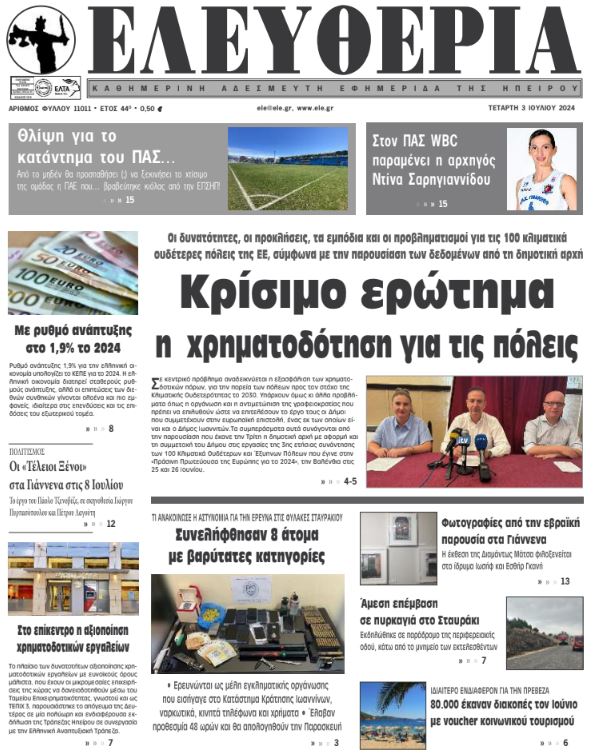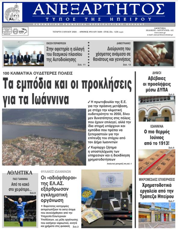 Διαβάστε στα πρωτοσέλιδα των γιαννιώτικων εφημερίδων της Τετάρτης 3 Ιουλίου