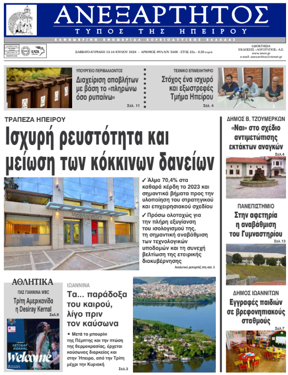 ΑρχικήTOP STORIES TOP STORIESΗΠΕΙΡΟΣ Τα πρωτοσέλιδα των γιαννιώτικων εφημερίδων 13.07.2024 0 FacebookTwitterWhatsAppEmailΤυπώνωViber Διαβάστε στα πρωτοσέλιδα των γιαννιώτικων εφημερίδων 13-14 Ιουλίου TagsΓΙΑΝΝΙΩΤΙΚΕΣ ΕΦΗΜΕΡΙΔΕΣΠΡΩΤΟΣΕΛΙΔΑ FacebookTwitterWhatsAppEmailΤυπώνωViber Προηγούμενο άρθροΤοποθετήθηκαν οι πρώτες βάσεις για τα ηλεκτροκίνητα ποδήλαταΕπόμενο άρθροΤα του Καίσαρος… ΣΧΕΤΙΚΑ ΑΡΘΡΑ Τα πρωτοσέλιδα των γιαννιώτικων εφημερίδων ΗΠΕΙΡΟΣ 12.11.2025 Τα πρωτοσέλιδα των γιαννιώτικων εφημερίδων ΗΠΕΙΡΟΣ 11.11.2025 Τα πρωτοσέλιδα των γιαννιώτικων εφημερίδων TOP STORIES 08.11.2025 Τα πρωτοσέλιδα των γιαννιώτικων εφημερίδων ΗΠΕΙΡΟΣ 07.11.2025 Τα πρωτοσέλιδα των γιαννιώτικων εφημερίδων ΗΠΕΙΡΟΣ 06.11.2025 Τα πρωτοσέλιδα των γιαννιώτικων εφημερίδων ΗΠΕΙΡΟΣ 05.11.2025 ΣΤΗΝ ΙΔΙΑ ΚΑΤΗΓΟΡΙΑ Τα έργα στο δασύλλιο στο στόχαστρο της ΕΔΕΛ ΗΠΕΙΡΟΣ 12.11.2025 Φιλιππιάδα: Ξεκίνησε η διαχείριση των ζωικών αποβλήτων από την Κέρκυρα TOP STORIES 12.11.2025 Στρατηγικό εργαλείο για τη βιώσιμη ανάπτυξη το ΤΠΣ Βορείων Τζουμέρκων ΗΠΕΙΡΟΣ 12.11.2025 Τα πρωτοσέλιδα των γιαννιώτικων εφημερίδων ΗΠΕΙΡΟΣ 12.11.2025 Ενημερωτική δράση για τον σακχαρώδη διαβήτη στα Ιωάννινα ΗΠΕΙΡΟΣ 11.11.2025 Συνελήφθη αλλοδαπός διωκόμενος στην Κακαβιά ΗΠΕΙΡΟΣ 11.11.2025 ΜΗ ΧΑΣΕΤΕ Τα έργα στο δασύλλιο στο στόχαστρο της ΕΔΕΛ Φιλιππιάδα: Ξεκίνησε η διαχείριση των ζωικών αποβλήτων από την Κέρκυρα Εντυπωσιακή αύξηση στις δωρεές οργάνων και μεταμοσχεύσεις στην Ελλάδα Συμβαδίζει με την κεντρική «γραμμή» ο ΣΥΡΙΖΑ Ιωαννίνων Επί τάπητος υποδομές, περιβάλλον και ΤΠΣ ΔΗΜΟΦΙΛΗ Στα ύψη οι τιμές κρέατος λόγω εξάπλωσης της ευλογιάς Το 71% των επιχειρήσεων στην Ελλάδα δυσκολεύεται να βρει προσωπικό Τα του Καίσαρος… Αποχρώσεις Ναυάγιο με νεκρούς μετανάστες στη Γαύδο