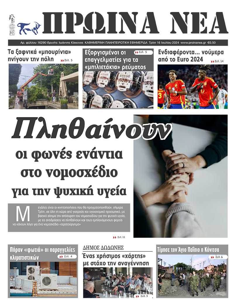 ΑρχικήΕΙΔΗΣΕΙΣΗΠΕΙΡΟΣ ΗΠΕΙΡΟΣ Τα πρωτοσέλιδα των γιαννιώτικων εφημερίδων 16.07.2024 0 FacebookTwitterWhatsAppEmailΤυπώνωViber Διαβάστε στα πρωτοσέλιδα των γιαννιώτικων εφημερίδων της Τρίτης 16 Ιουλίου TagsΓΙΑΝΝΙΩΤΙΚΕΣ ΕΦΗΜΕΡΙΔΕΣΠΡΩΤΟΣΕΛΙΔΑ FacebookTwitterWhatsAppEmailΤυπώνωViber Προηγούμενο άρθροΤα του Καίσαρος…Επόμενο άρθροΜύκονος: Ινδός έκανε πρόταση γάμου σε σκάφος στολισμένο με ερυθρόλευκα μπαλόνια ΣΧΕΤΙΚΑ ΑΡΘΡΑ Τα πρωτοσέλιδα των γιαννιώτικων εφημερίδων TOP STORIES 31.12.2025 Τα πρωτοσέλιδα των γιαννιώτικων εφημερίδων ΗΠΕΙΡΟΣ 30.12.2025 Τα πρωτοσέλιδα των γιαννιώτικων εφημερίδων ΗΠΕΙΡΟΣ 24.12.2025 Τα πρωτοσέλιδα των γιαννιώτικων εφημερίδων ΗΠΕΙΡΟΣ 23.12.2025 Τα πρωτοσέλιδα των γιαννιώτικων εφημερίδων ΗΠΕΙΡΟΣ 19.12.2025 Τα πρωτοσέλιδα των γιαννιώτικων εφημερίδων ΗΠΕΙΡΟΣ 18.12.2025 ΣΤΗΝ ΙΔΙΑ ΚΑΤΗΓΟΡΙΑ Κοινωνικές δράσεις από την Αστυνομική Διεύθυνση Ηπείρου ΗΠΕΙΡΟΣ 01.01.2026 ΓΙΑΝΝΗΣ ΣΤΕΦΟΣ – Βολές κατά Καχριμάνη για τη «φωτογραφική» πρόσληψη ΗΠΕΙΡΟΣ 31.12.2025 Παράταση αγωνίας για τους αντιδημάρχους ΗΠΕΙΡΟΣ 31.12.2025 Πρωτοχρονιάτικα κάλαντα στο Δημαρχείο Ιωαννίνων ΗΠΕΙΡΟΣ 31.12.2025 Τα κάλαντα της Πρωτοχρονιάς στην Περιφέρεια Ηπείρου ΗΠΕΙΡΟΣ 31.12.2025 Νέες διαδρομές περιήγησης στον αρχαιολογικό χώρο της Νικόπολης ΗΠΕΙΡΟΣ 31.12.2025 ΜΗ ΧΑΣΕΤΕ ΓΙΑΝΝΗΣ ΣΤΕΦΟΣ – Βολές κατά Καχριμάνη για τη «φωτογραφική» πρόσληψη Παράταση αγωνίας για τους αντιδημάρχους Νέες διαδρομές περιήγησης στον αρχαιολογικό χώρο της Νικόπολης Εγνατία Οδός: Αυξάνονται τα διόδια, καταργείται το EgnatiaPass Αυξήσεις στα διόδια από 1η Ιανουαρίου 2026 ΔΗΜΟΦΙΛΗ ΕΓΝΑΤΙΑ ΟΔΟΣ -Σε ισχύ οι εξαιρέσεις για τους μόνιμους κατοίκους Το Σίδνεϊ υποδέχθηκε το 2026 με φαντασμαγορική επίδειξη πυροτεχνημάτων (βίντεο) Μειωμένος ΦΠΑ 30% από σήμερα σε αυτά τα νησιά Κοινωνικές δράσεις από την Αστυνομική Διεύθυνση Ηπείρου Η Γαλλία ετοιμάζεται να απαγορεύσει στους εφήβους την πρόσβαση στα social media